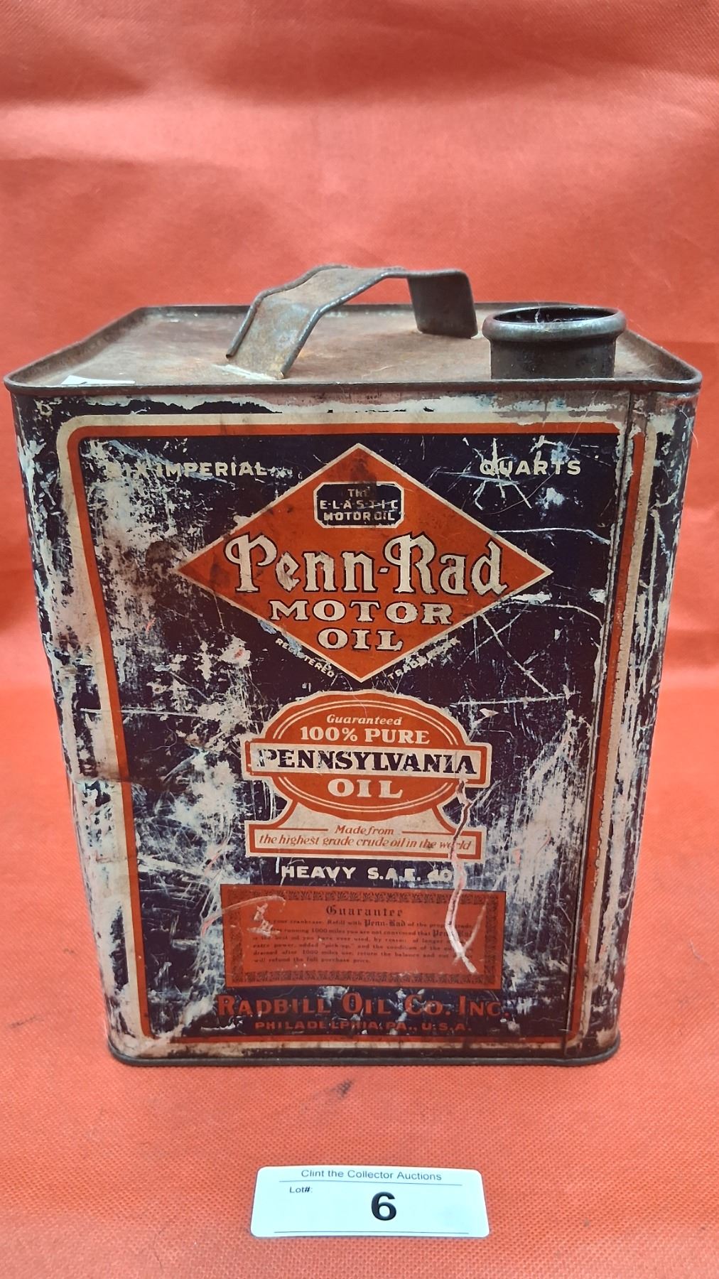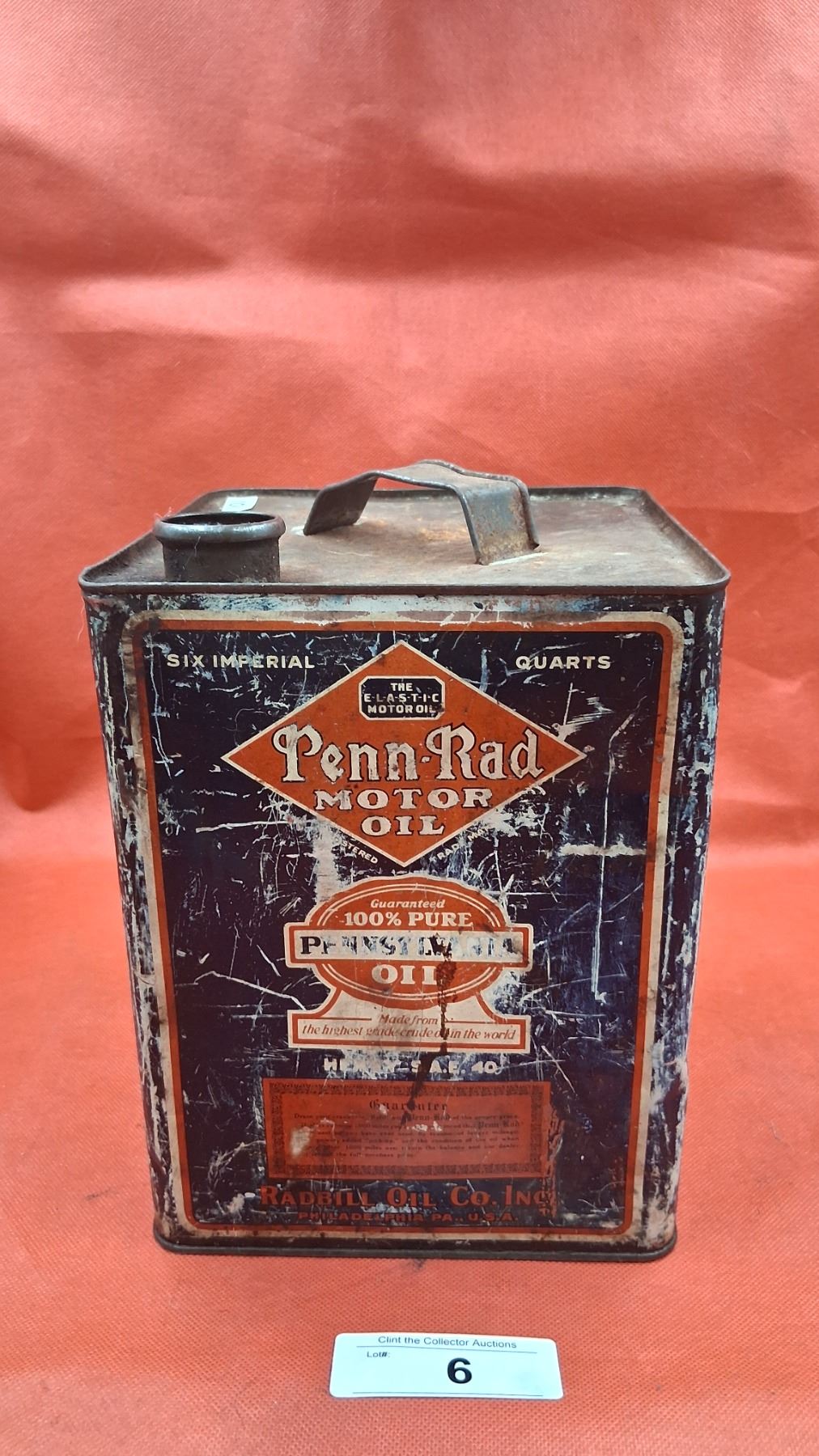 Beautiful early 20th century Penn Rad Motor Oil can 9" tall