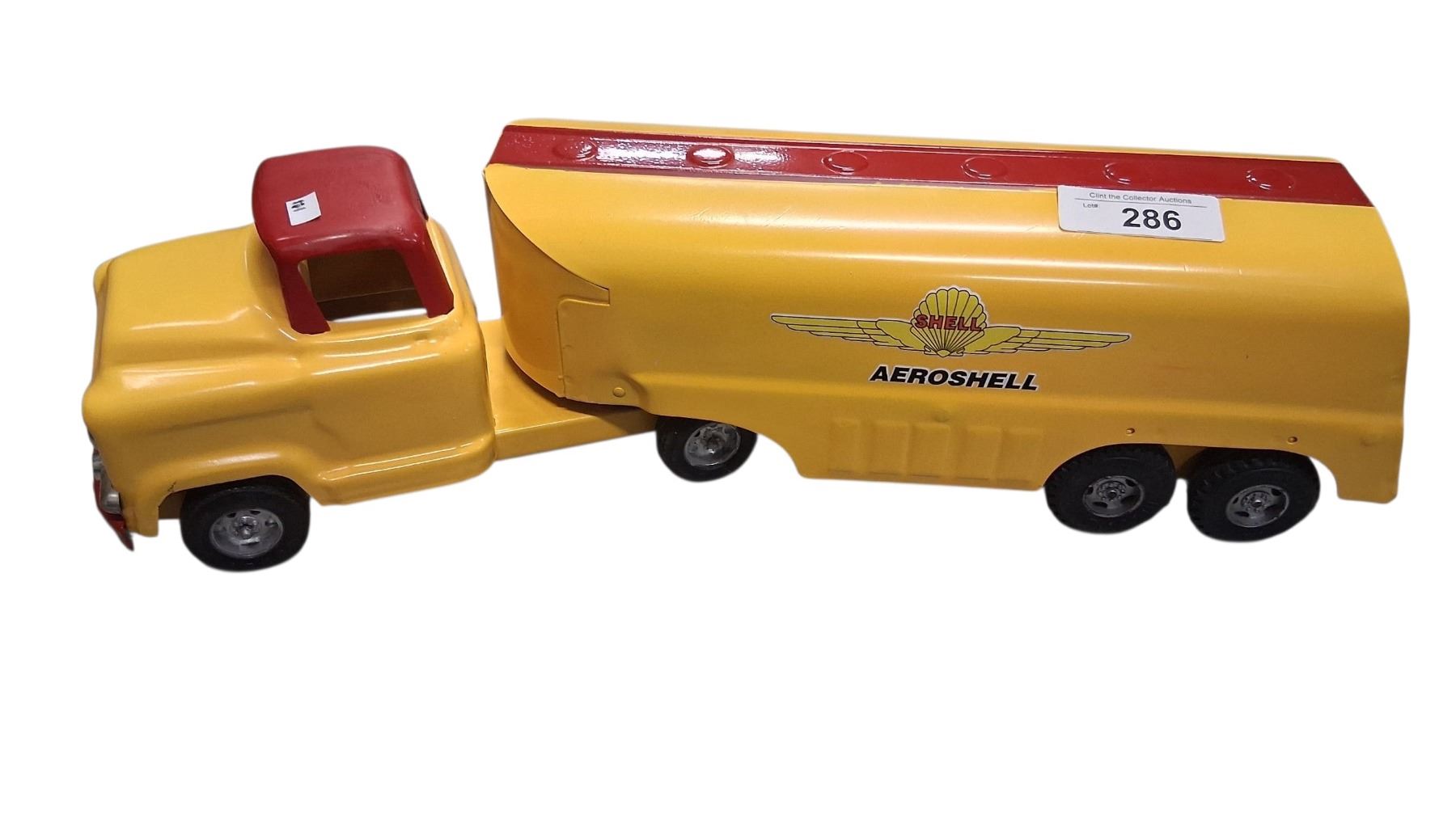 Beautifully restored 1950s Shell Aeroshell Buddy L tanker truck & trailer 22"