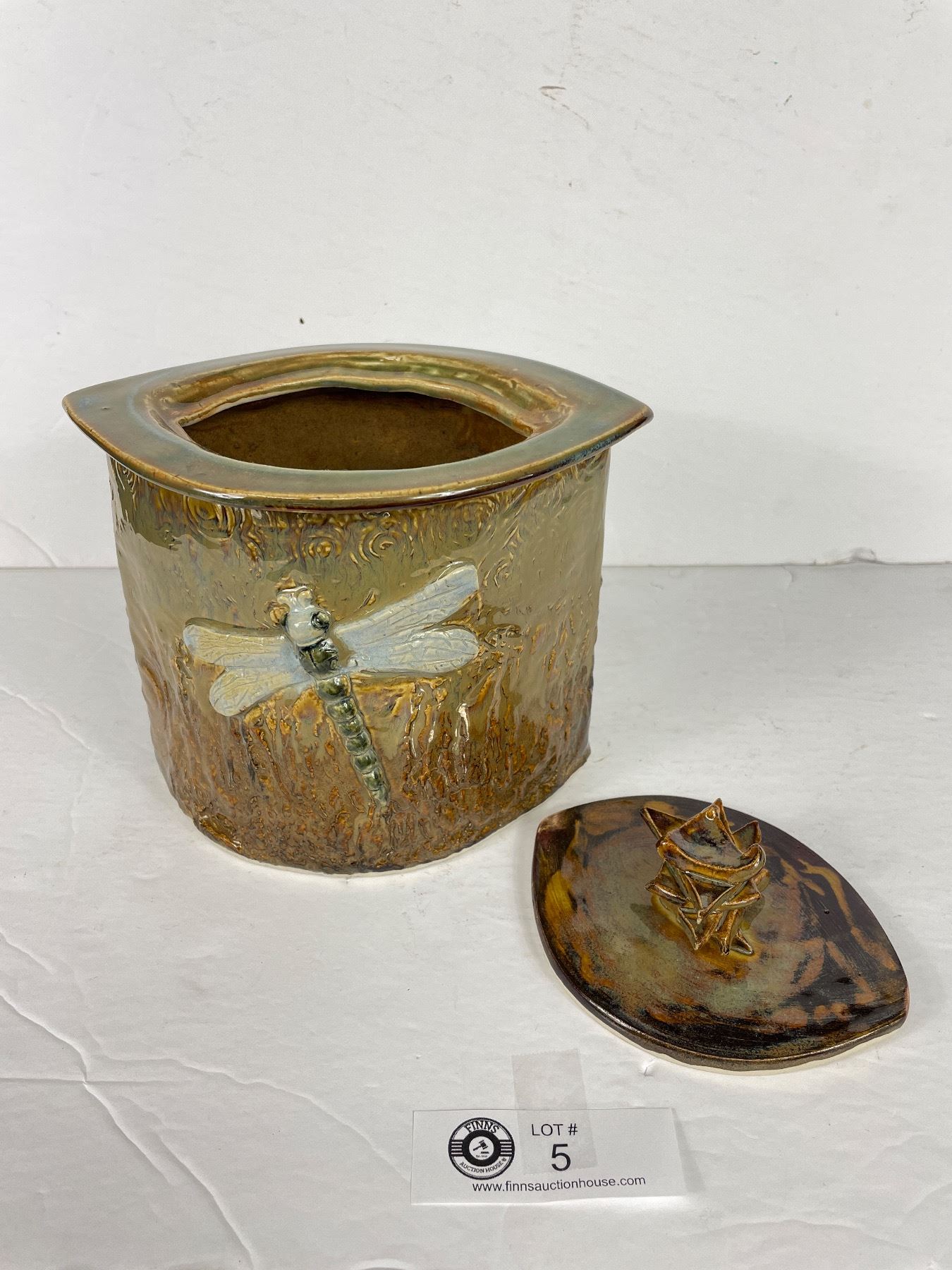 Beautifuly Detailed Handmade Signed Art Studio Pottery Stoneware Canister w/Dragon Motif