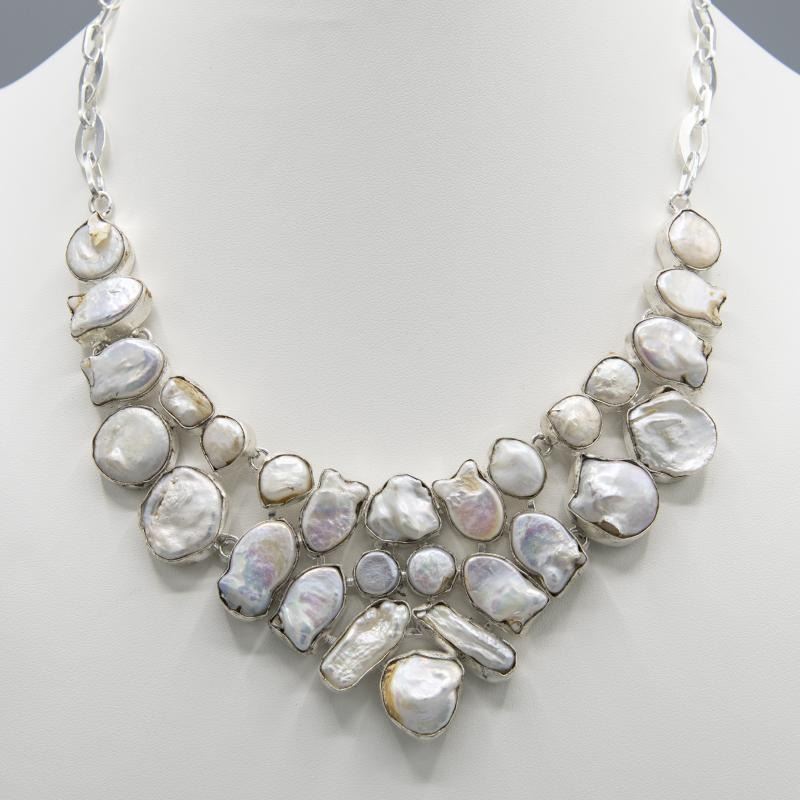 Beautuiful 205 Ct Natural Biwa Pearl Necklace. These High Luster Luminous Pearls Are Mounted In Solid .925 Sterling Silver. Fine Nacre And Displaying A Brilliant Spectrum Of Colors Many Colors. 454.5 Cttw AppoX 91 Total Gram Weight. 18 " Long. Don't Miss This One.