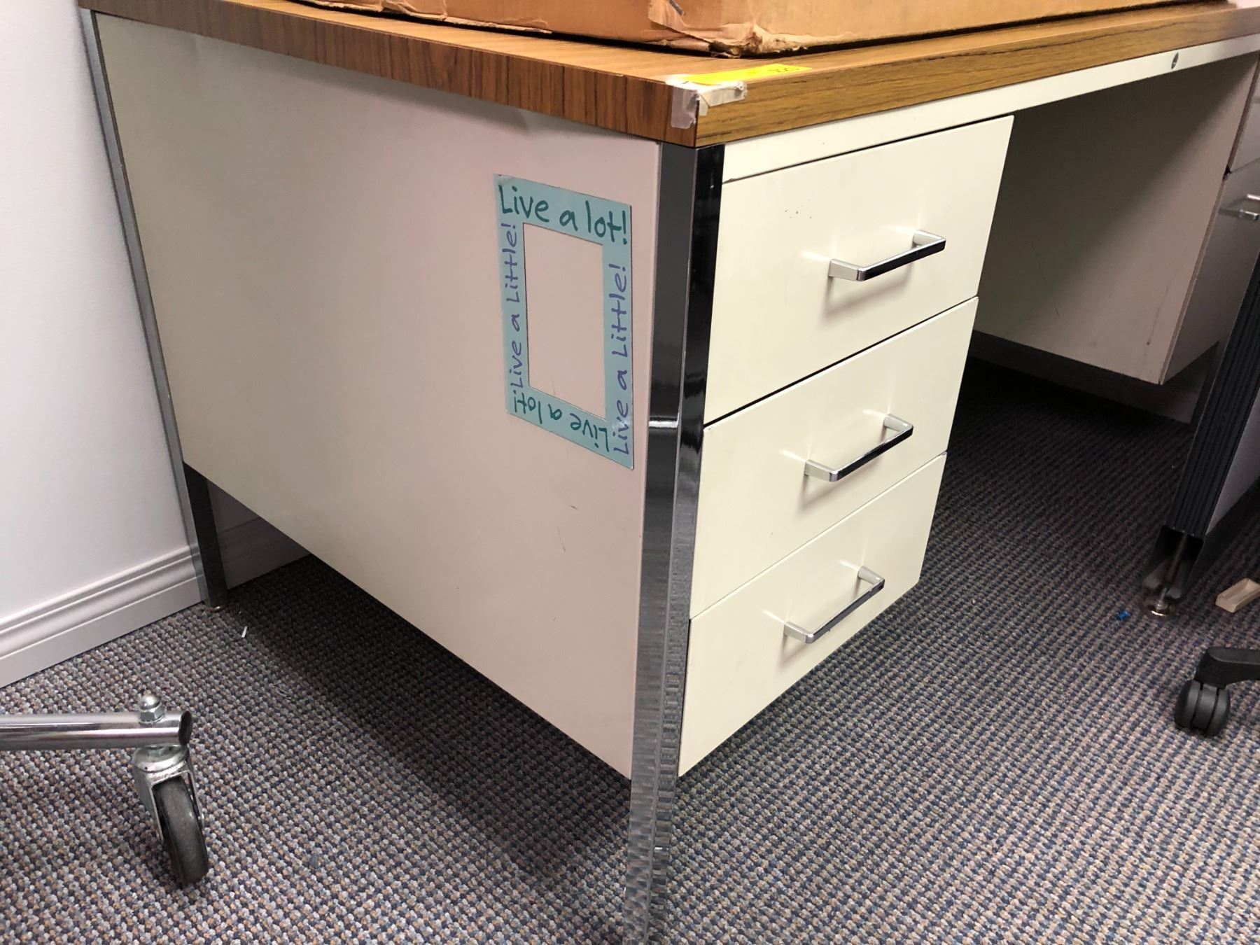 Beige Metal w/ laminate top 5 drawer double pedestal desk from production office popular sci-fi tv series