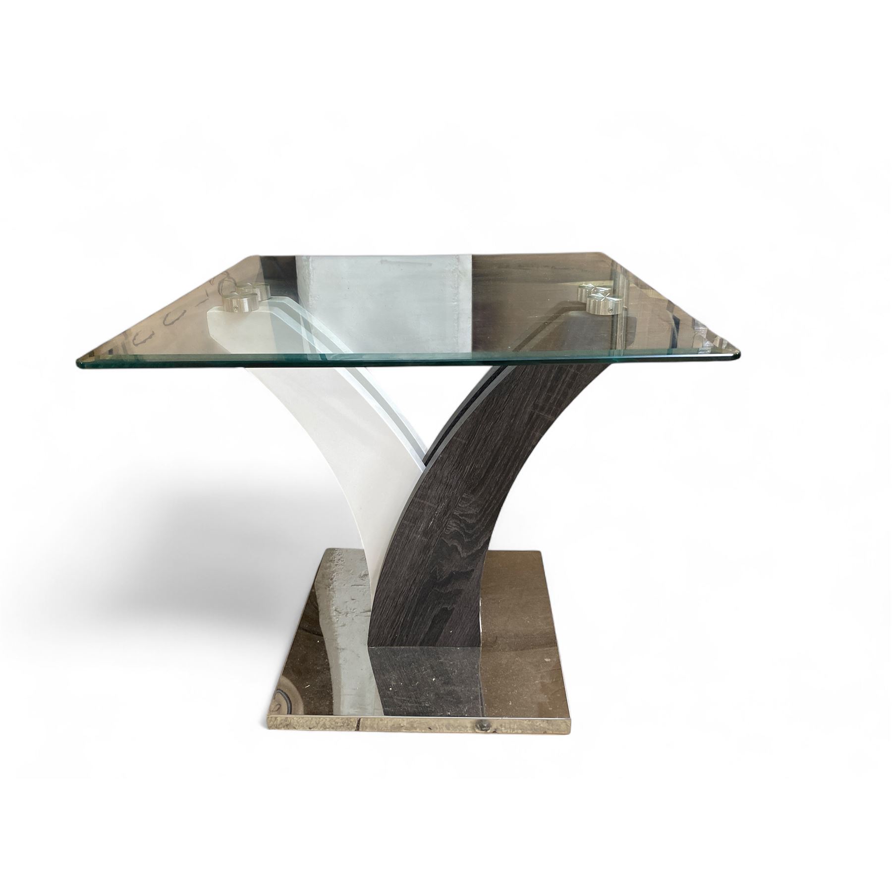 Benjara Modern 2 Tone Flared Base End Table w/ Glass Top - Approx. 23 1/2" x 23 1/2" x 22"