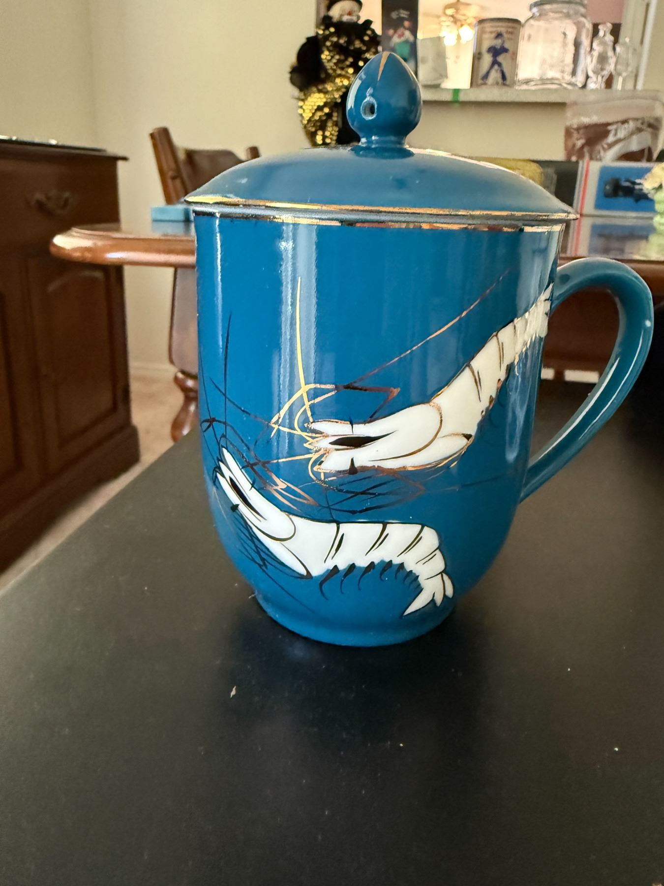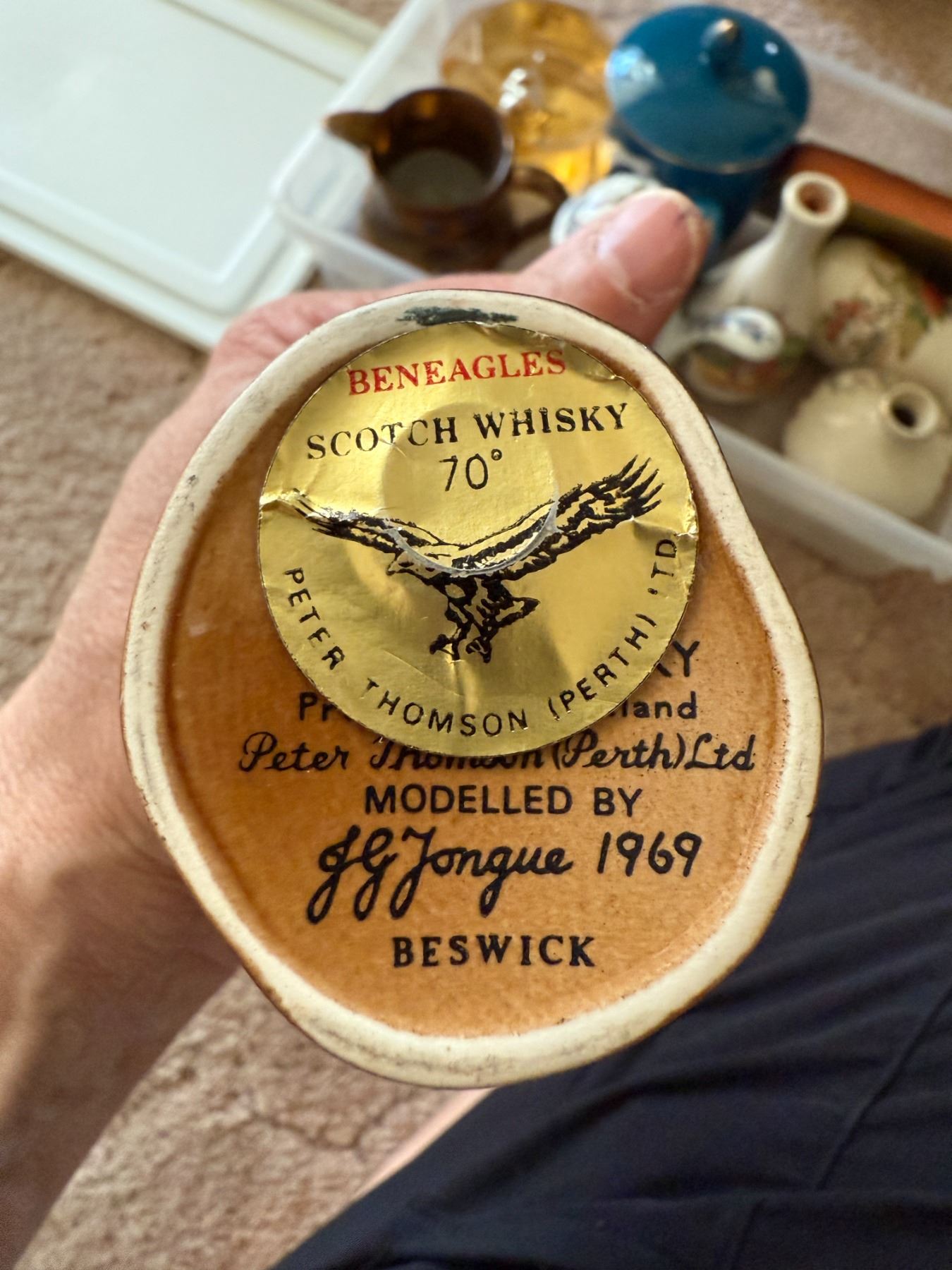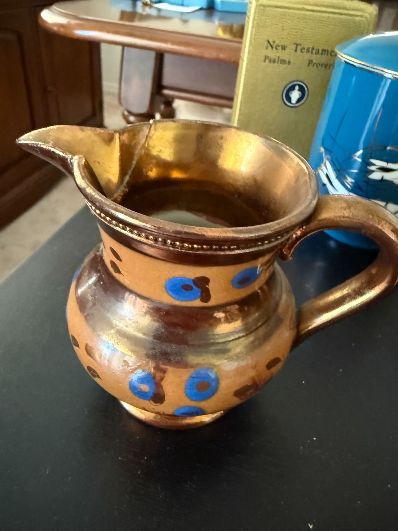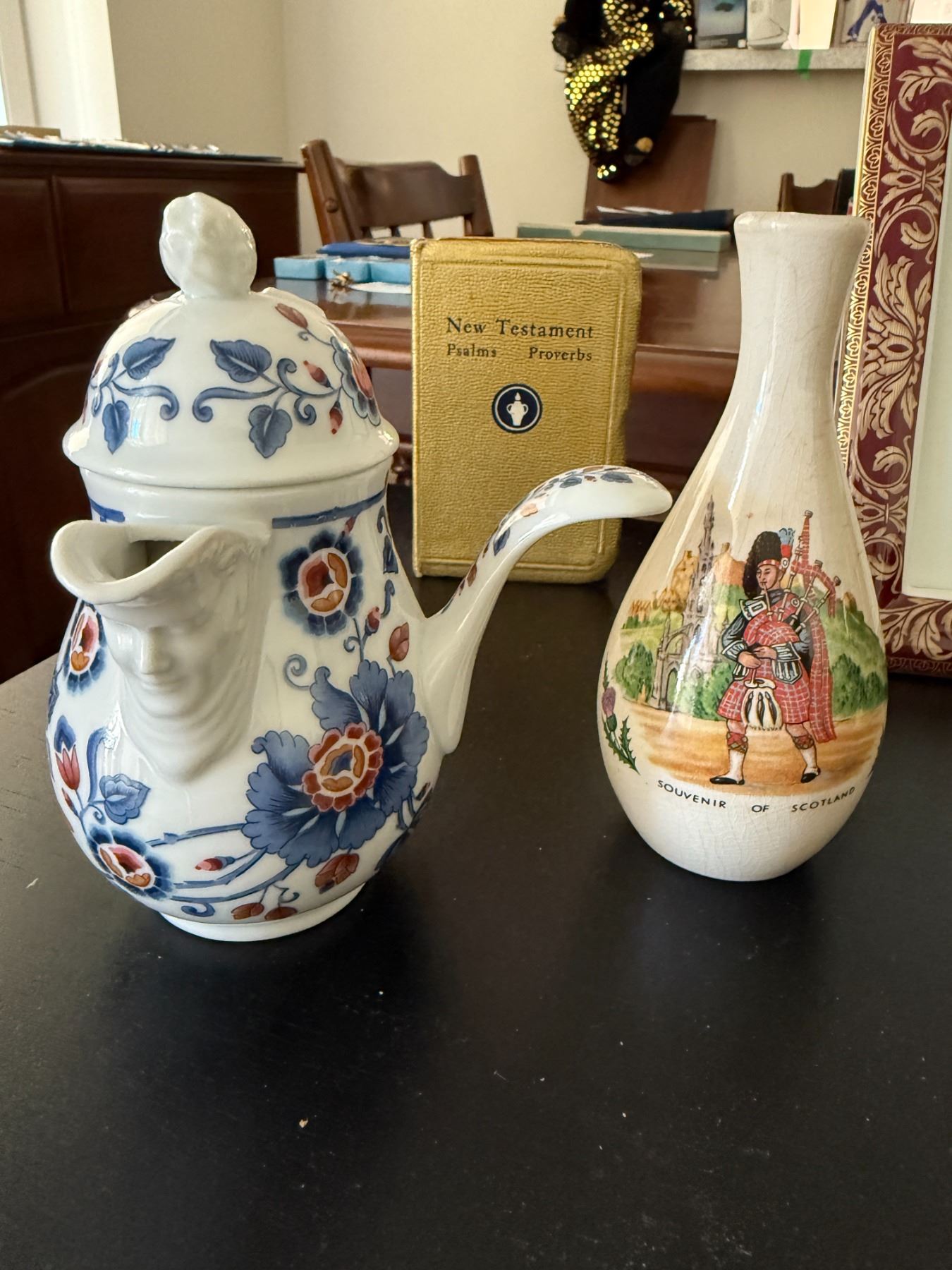 Beswick eagle, décor, lidded tea cup, Asian lacquered coasters and more. Repair in creamer.
