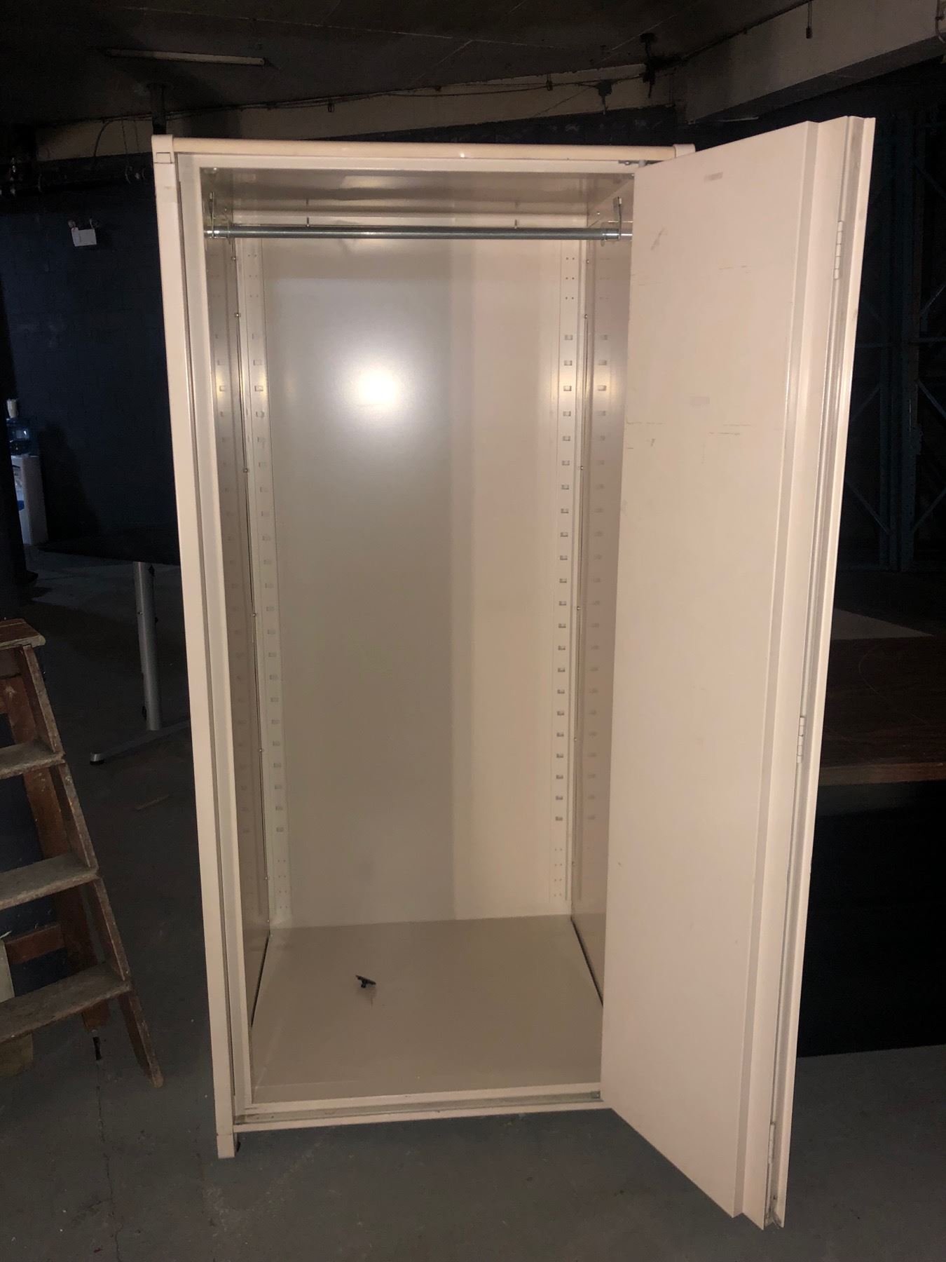 Metal with wood top desk - Dimensions of the table - 60" x 30" x 29.5" -- 4 metal drawers -- Dimensions of the cabinet - 30" x 25" x 65.25" (high)