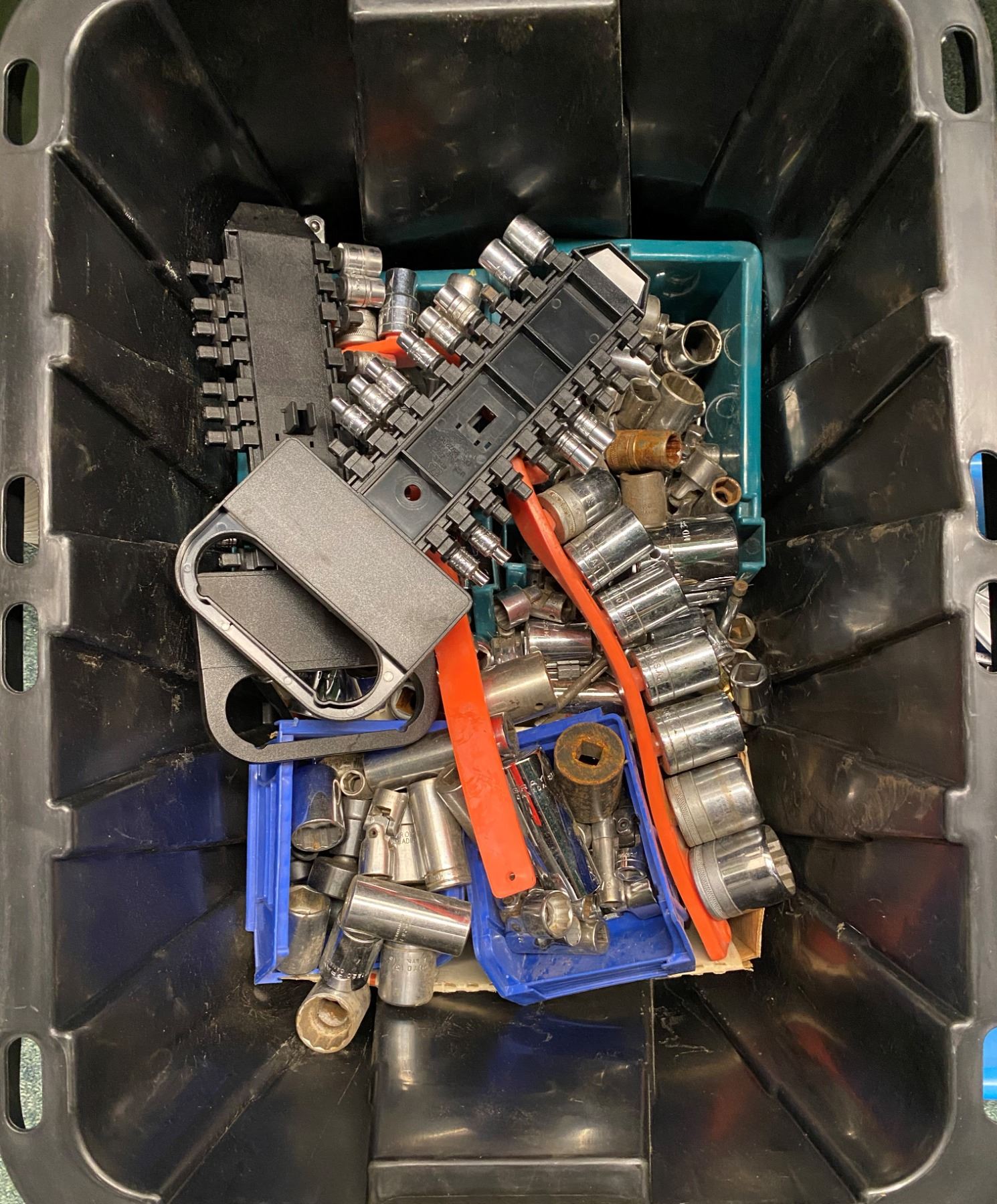 Big box of assorted sockets - some brands included Williams/ Armstrong/ Mastercraft/ Craftsman/ S-K etc.