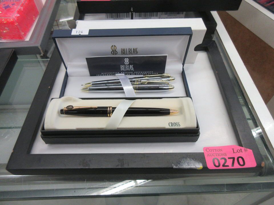 1990's Bill Blass Steel Pen and Pencil Set and Lacquered Cross Pen with BDC Logo.