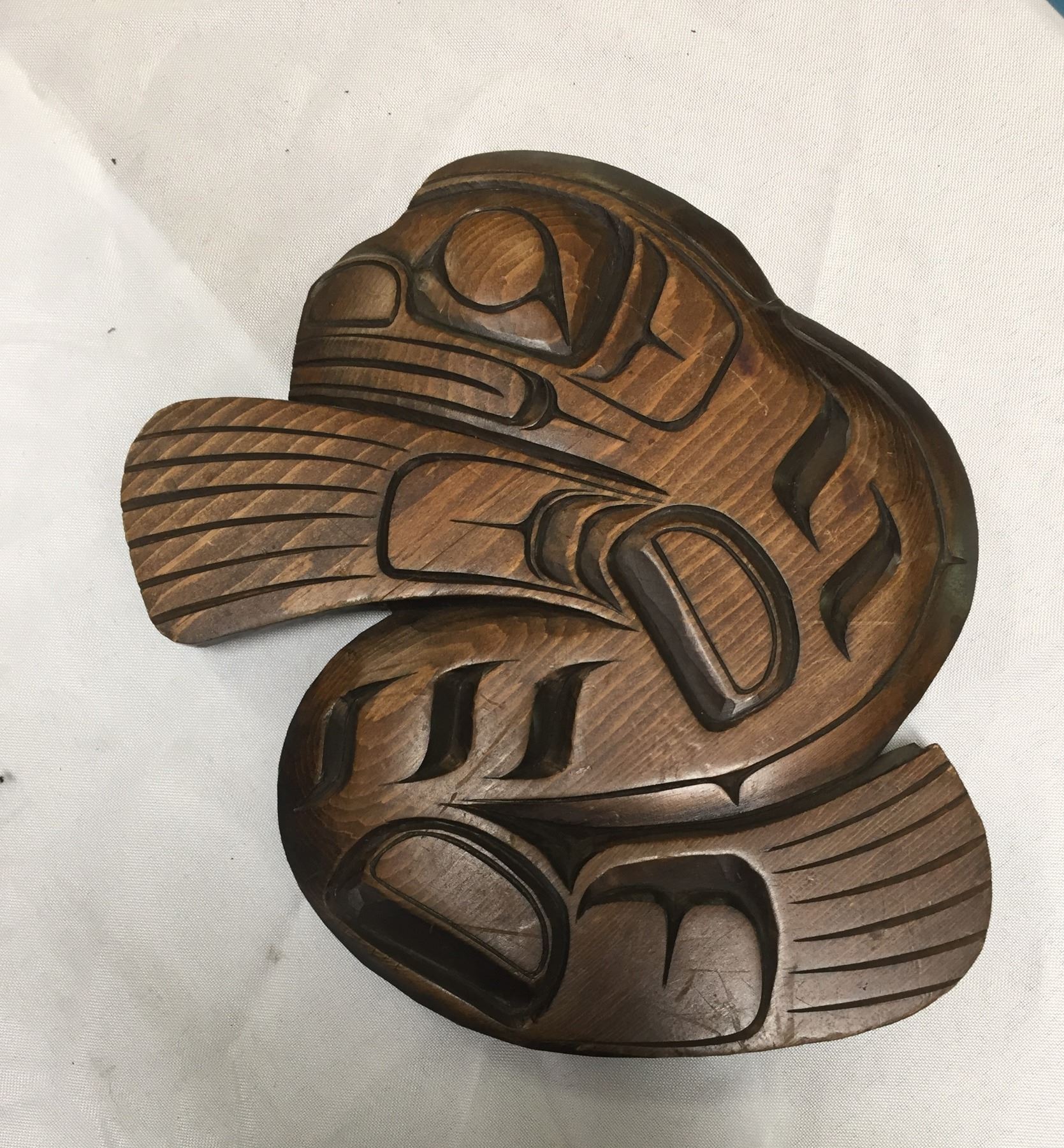 Bill Brotchi Wood Carving “ Seal” From The Kwakiut Tribe From Alert Bay. Signed on back 8”w x8.5”H