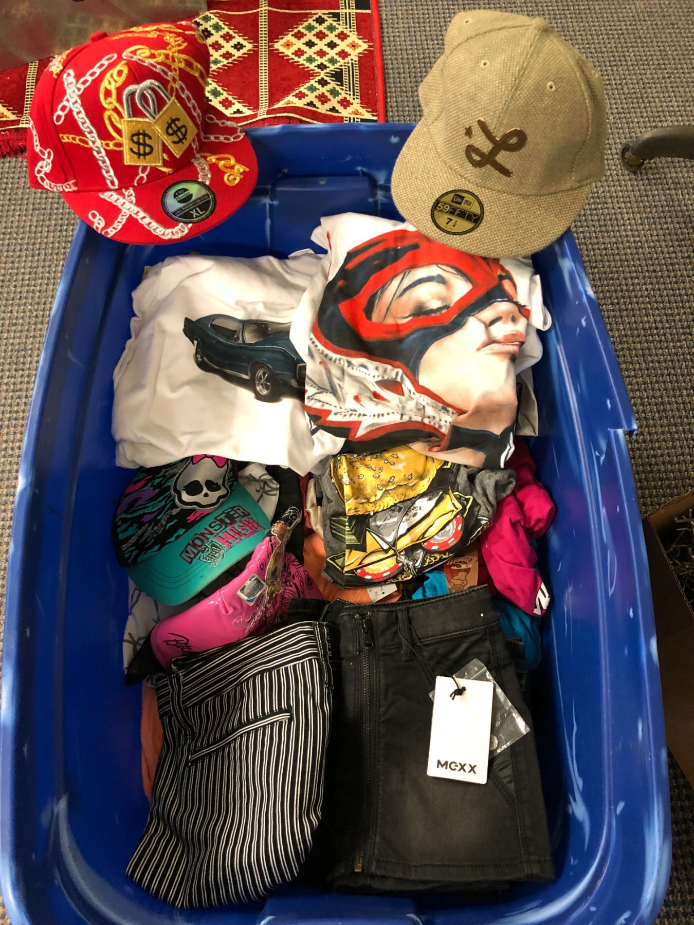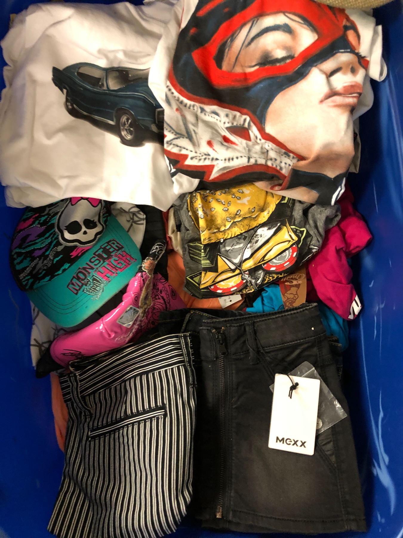 Bin Full of Specialty Clothing - including Baseball Hats, Hurley Shorts, Mexx Skirt - Full of great clothing - New with tags