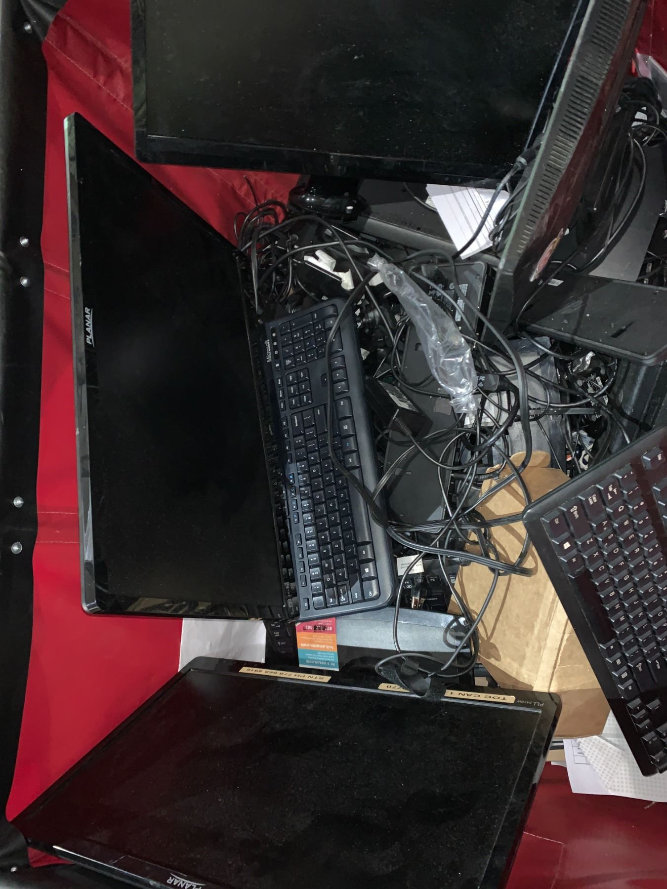 Bin full of misc. electronics - includes monitors / cables / keyboards / attachments etc