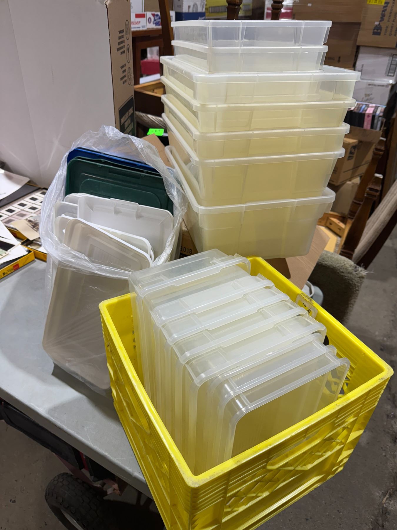 Bins with lids and crate
