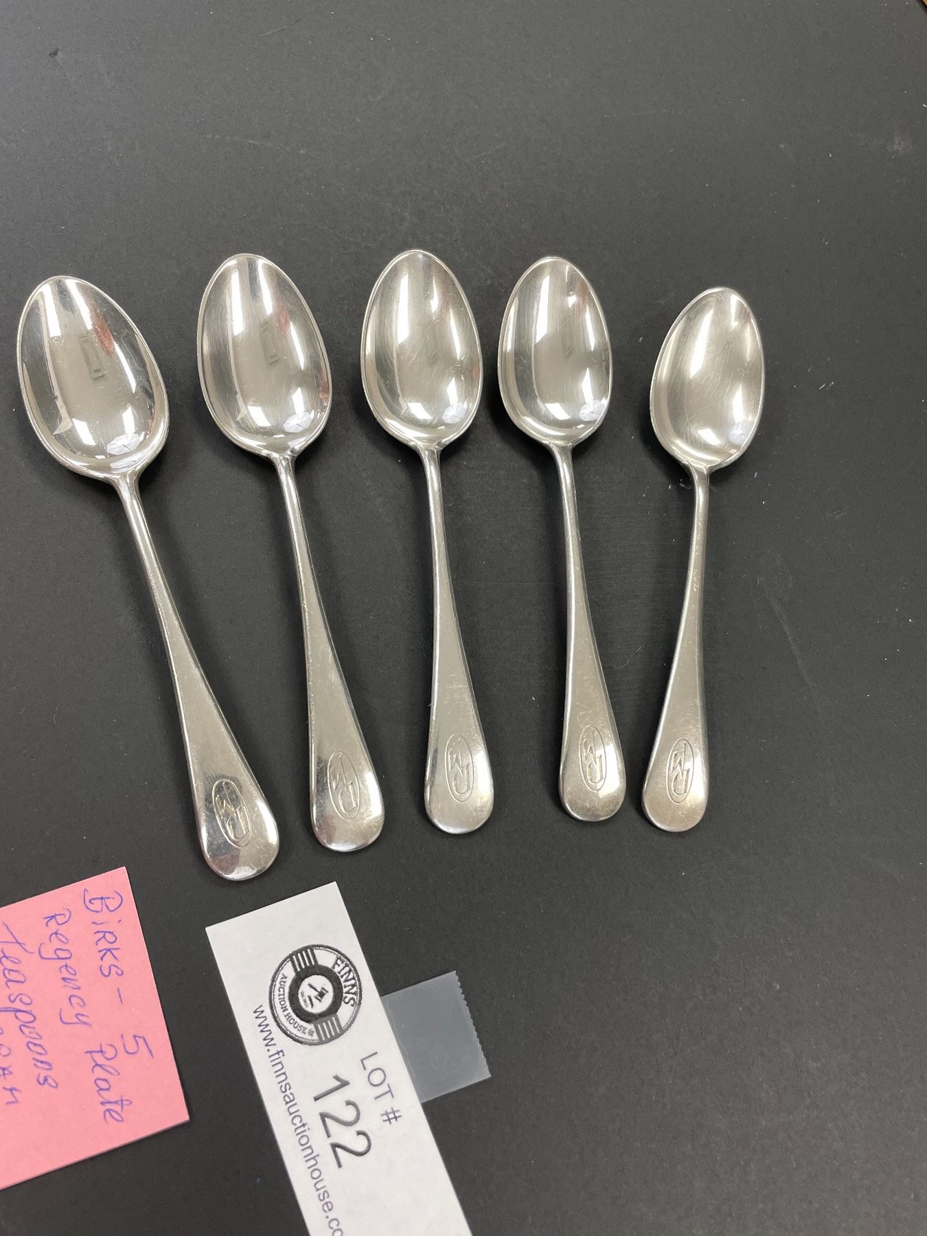 Birks Regency Plate 5 Teaspoons Monogrammed DM Spoons Show Very Little Wear