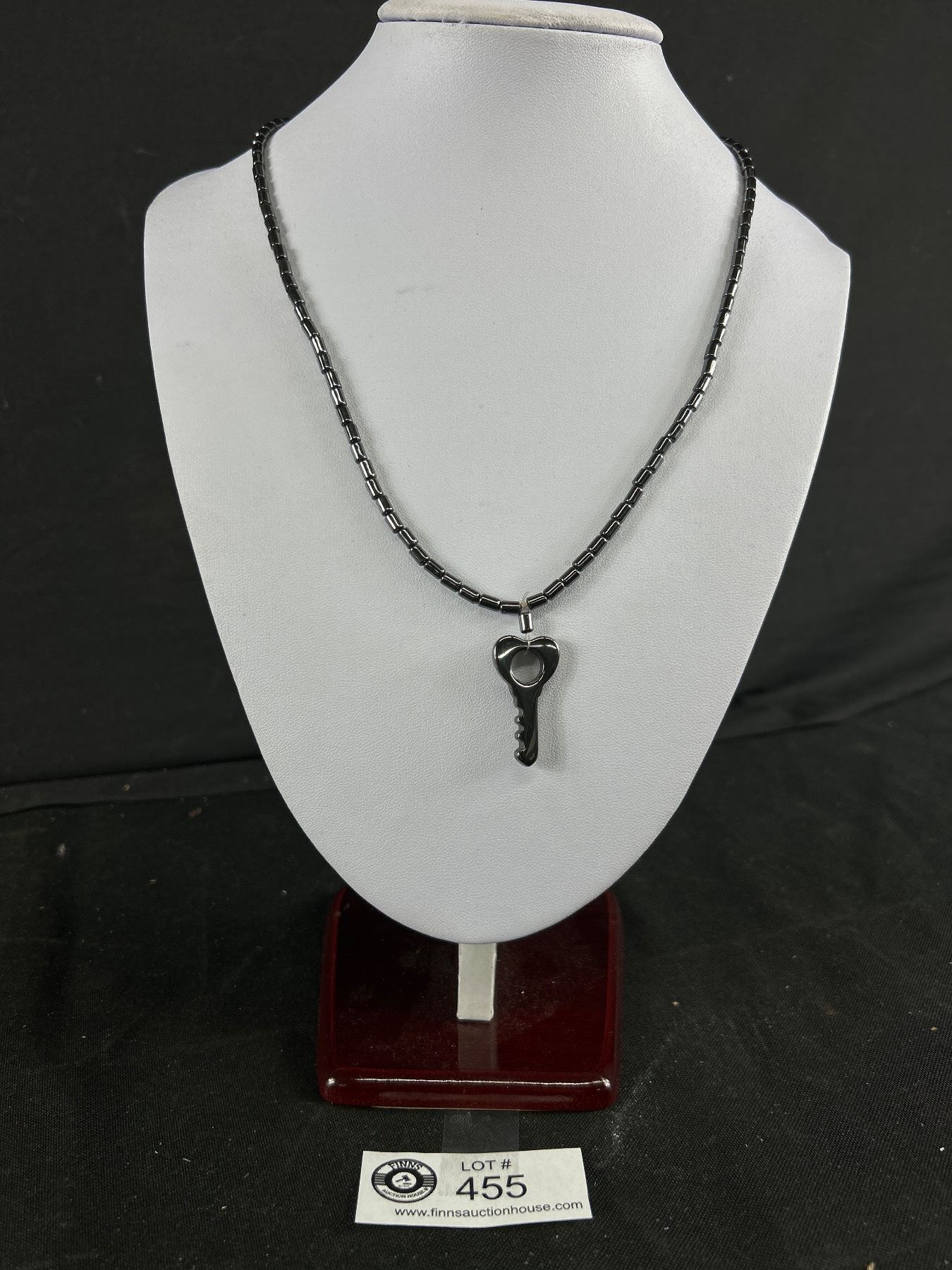 Black Alaskan Diamond Hemetite Stone Necklace w/ Pendant