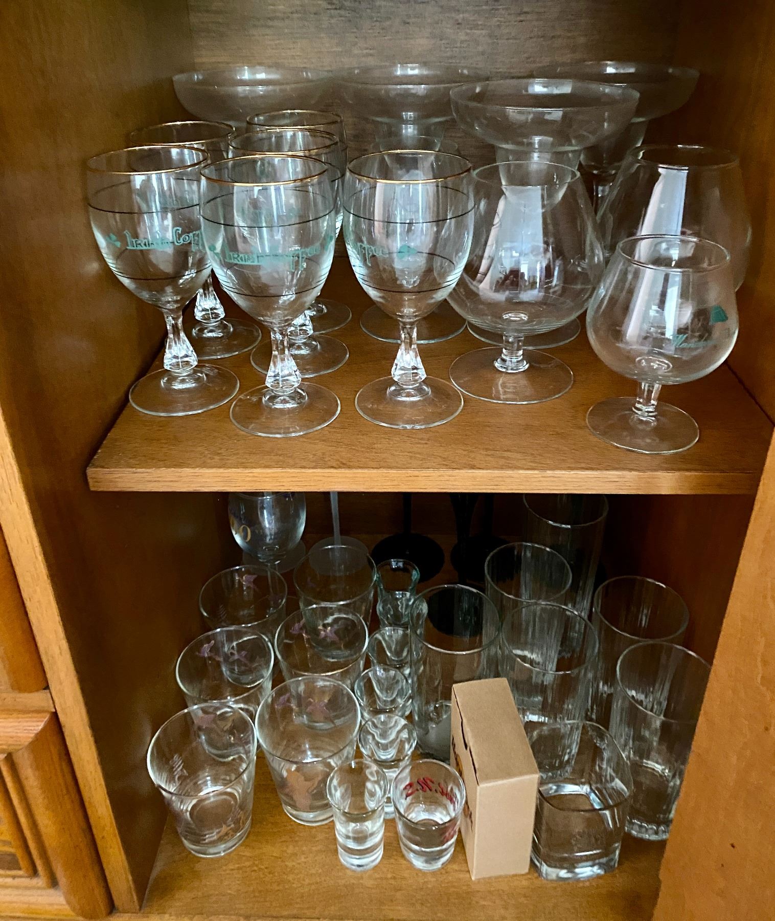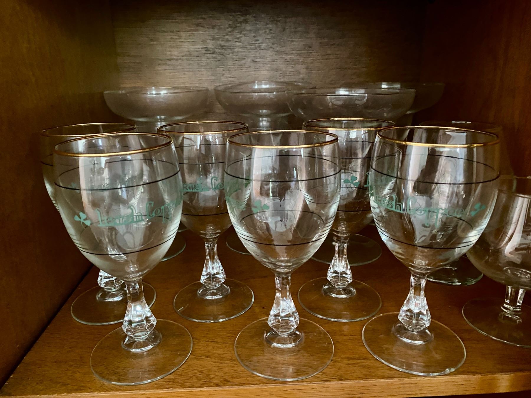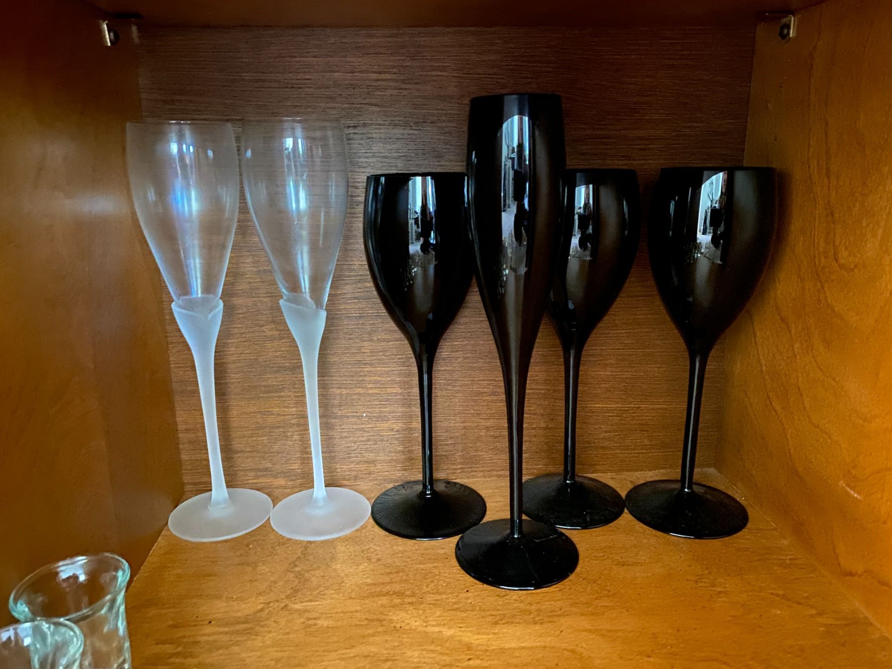 4 black crystal stemware glasses. Vintage glasses and other glassware.