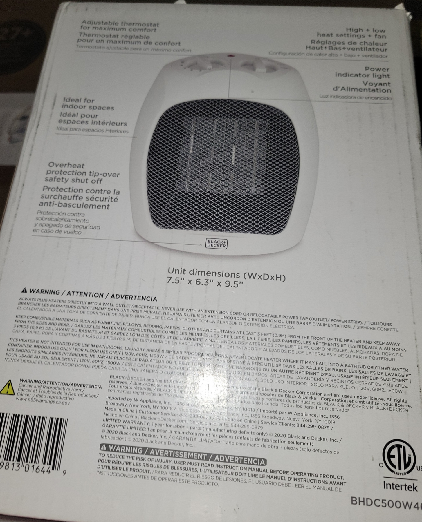 As is. Adjustable thermostat. High & low heat settings.