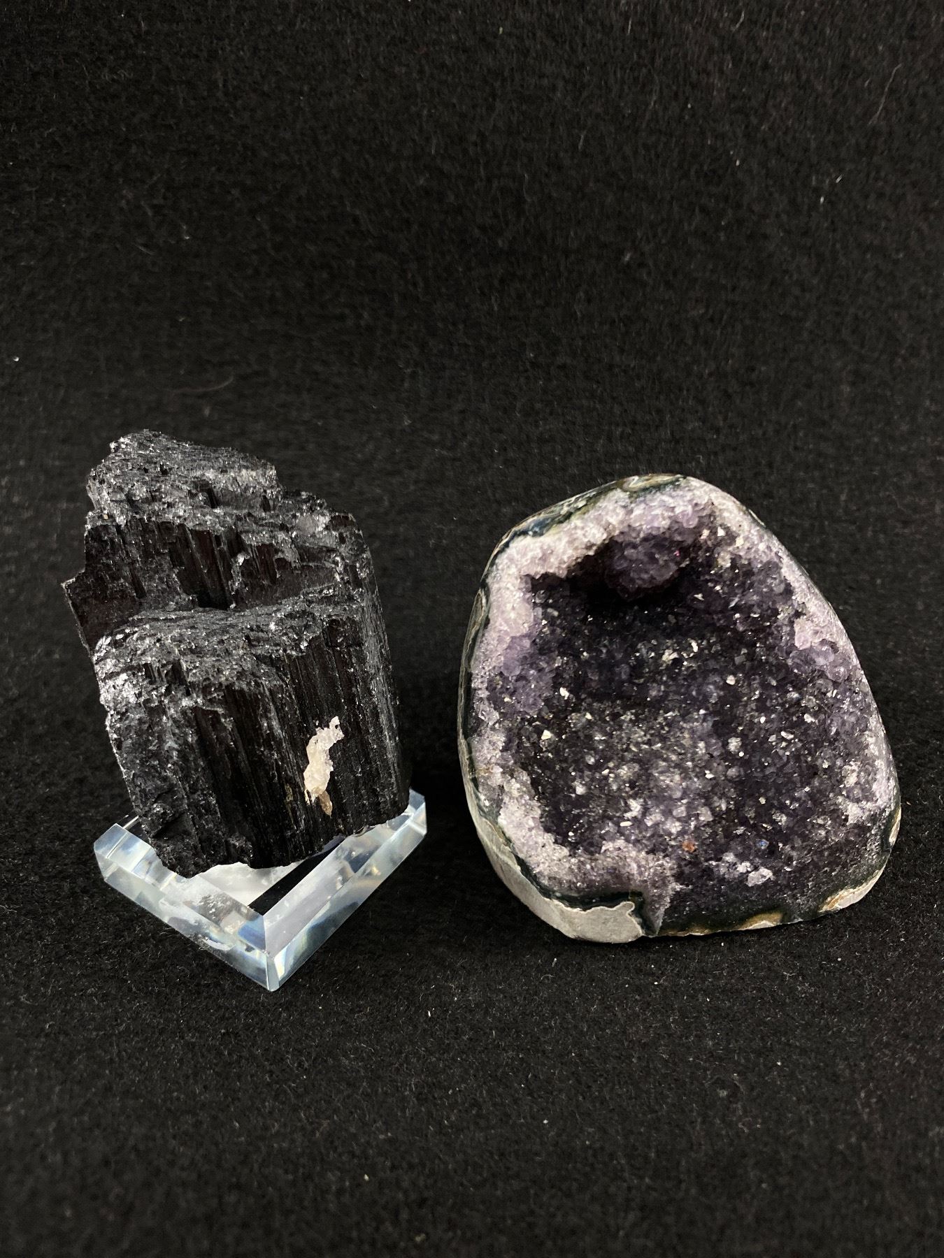 Black Tourmaline Rough & Amethyst Geode. Retails $380.00 Each