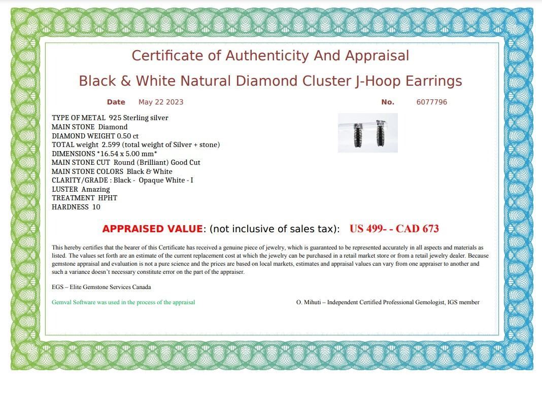 Black & White Natural Diamond Cluster I-Hoop Earrings - retail appraisal value $499 USD (w/ Certificate Of Authenticity Appraisal)