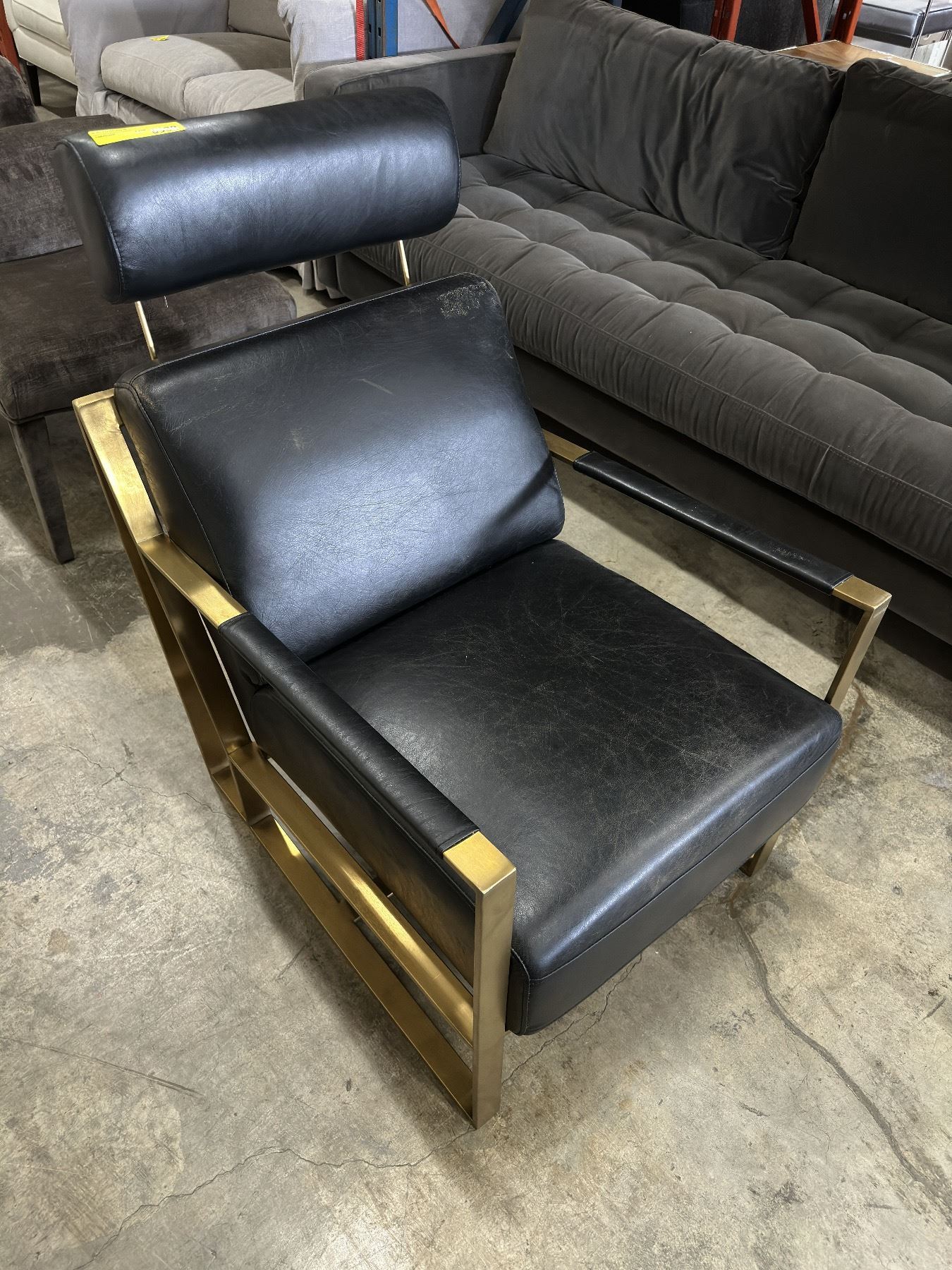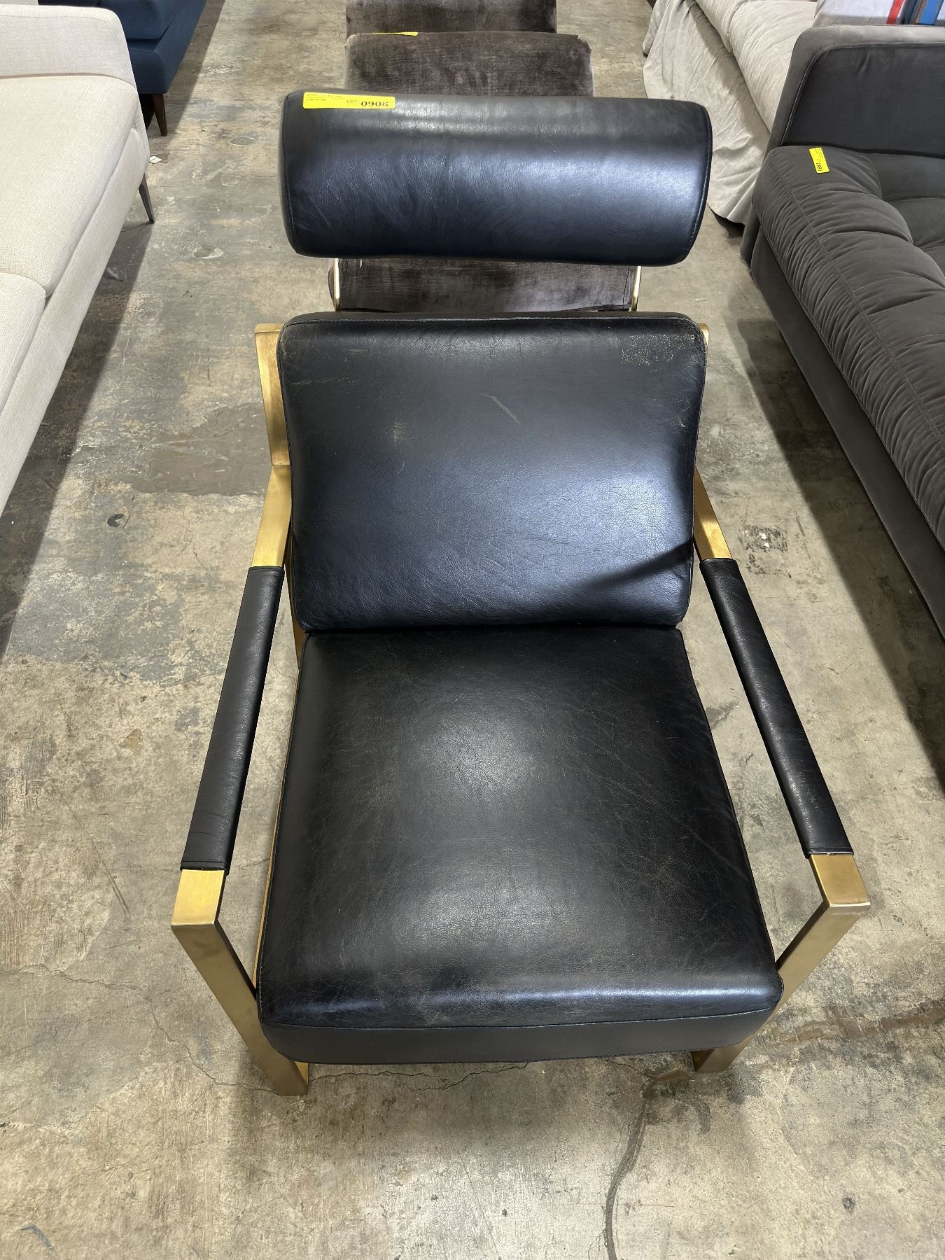 Black leather chair w/gold metal legs