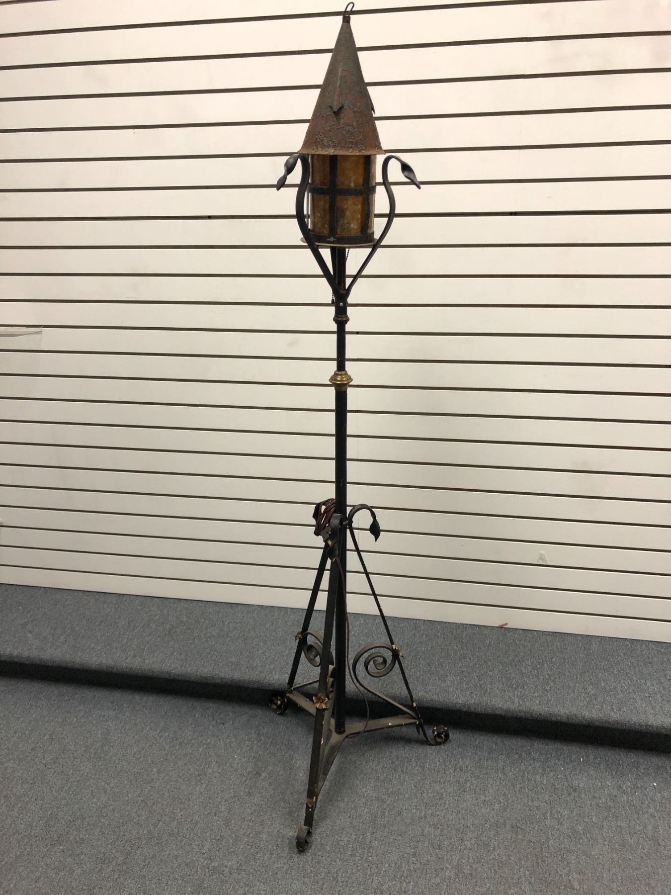 Black wrought iron approx. 6ft tall floor lamp from movie set