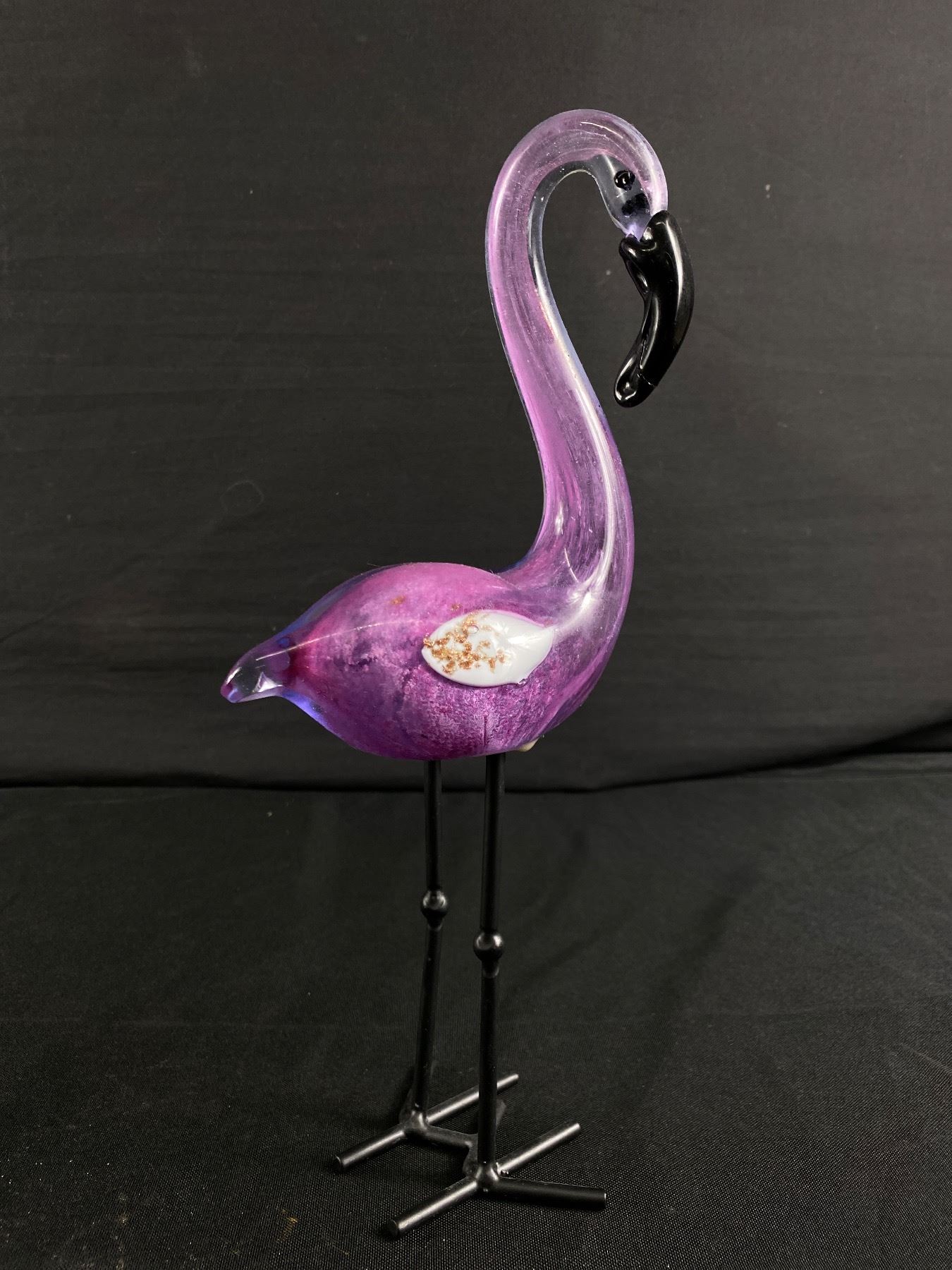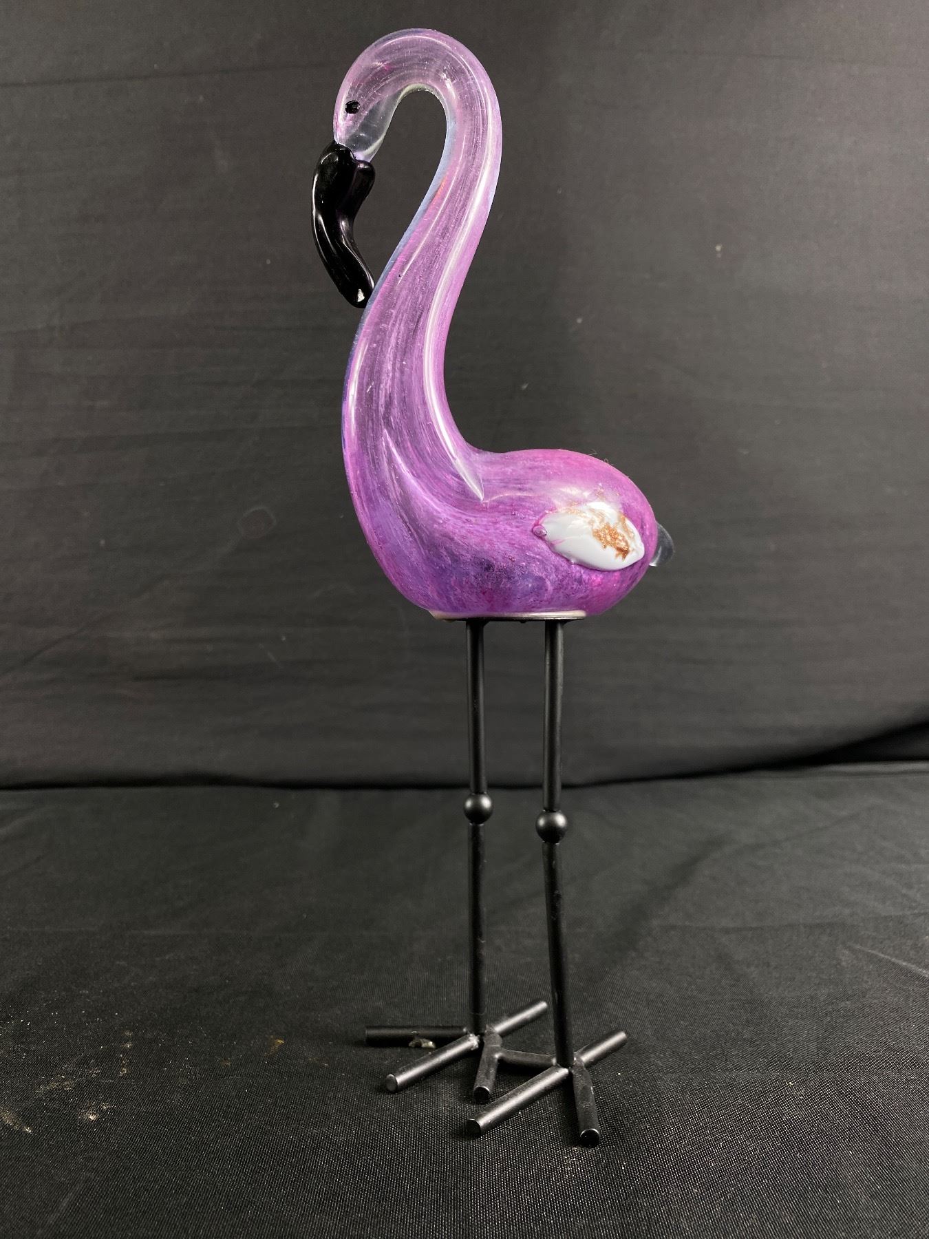 Blown Glass Art Flamingo Figurine w/ Metal Legs. Approx. 11" H