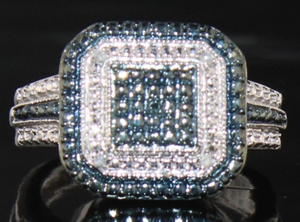 Blue Diamond Dinner Ring - Size 7 - retail appraisal value $449.20 USD (w/ Certificate Of Authenticity Appraisal)