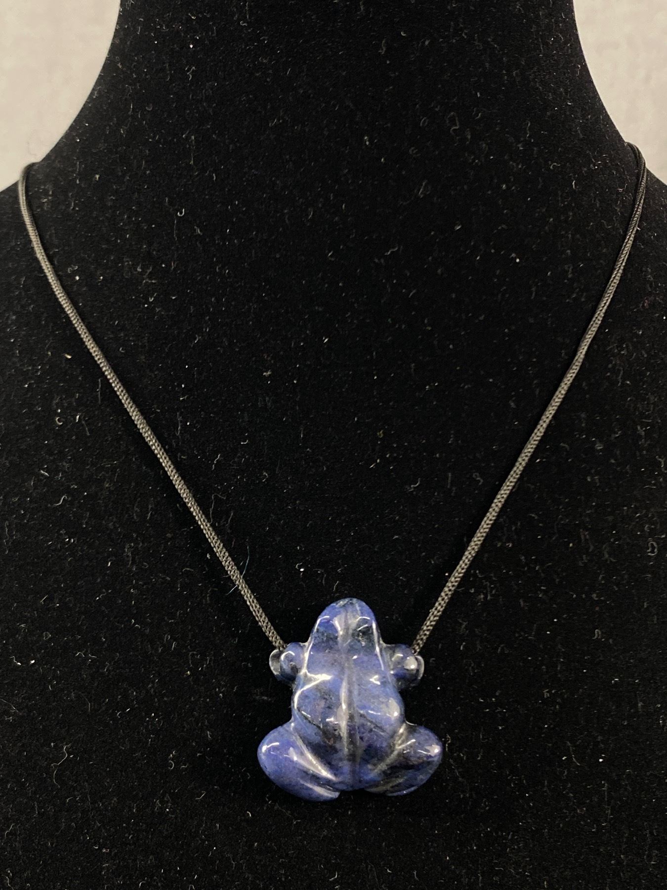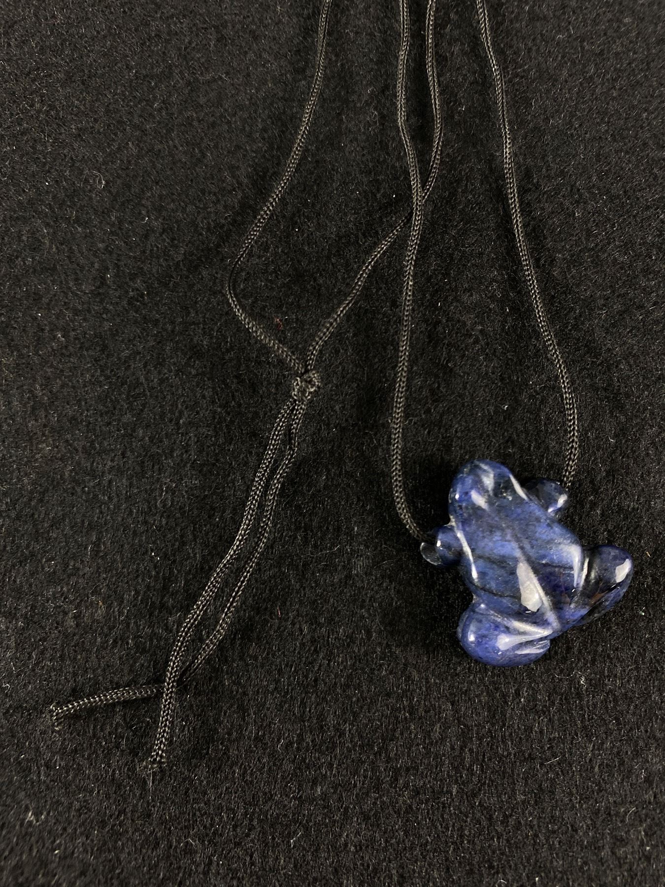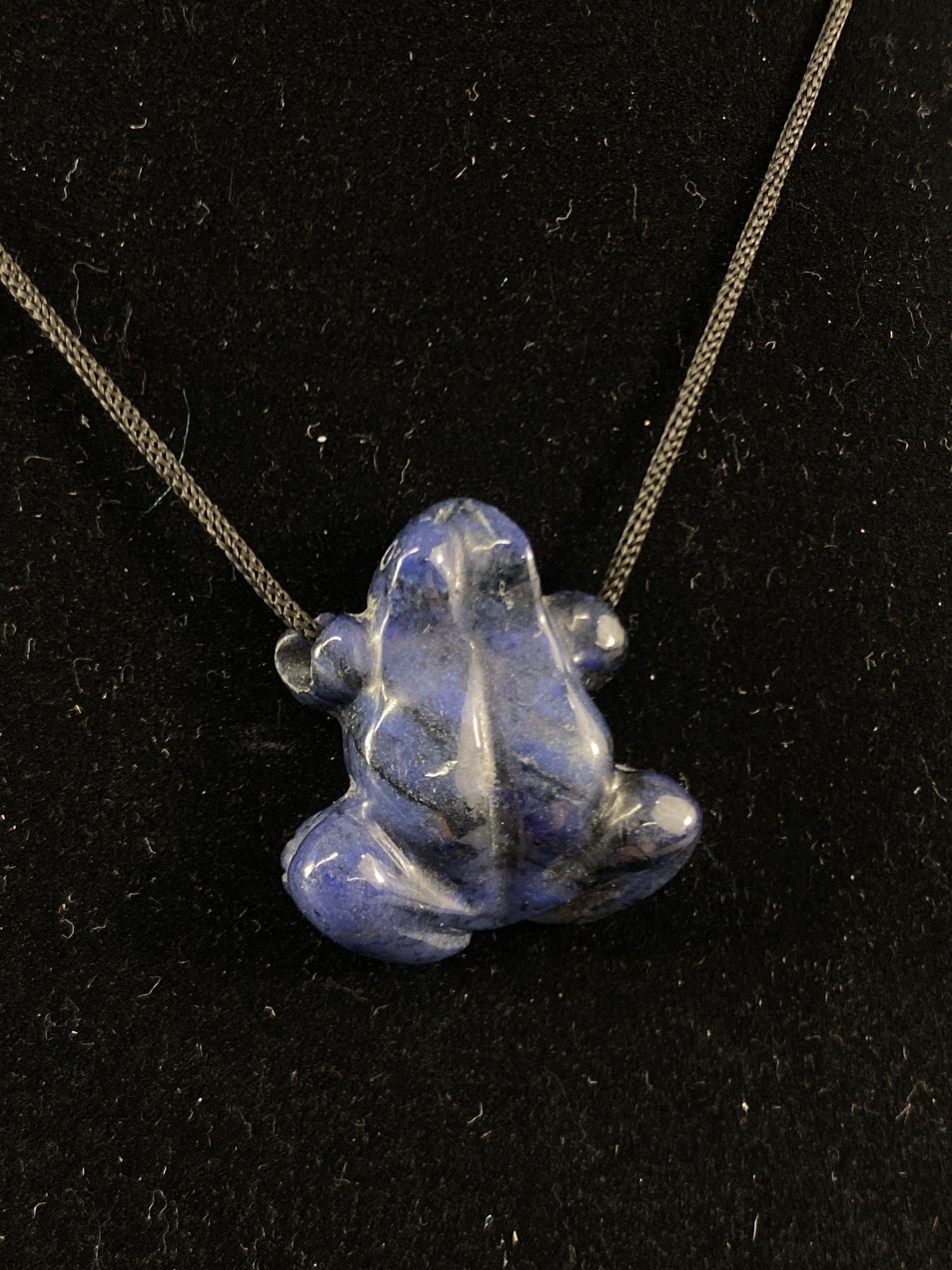 Blue Lapis Lazuli Carved Frog Pendant Necklace