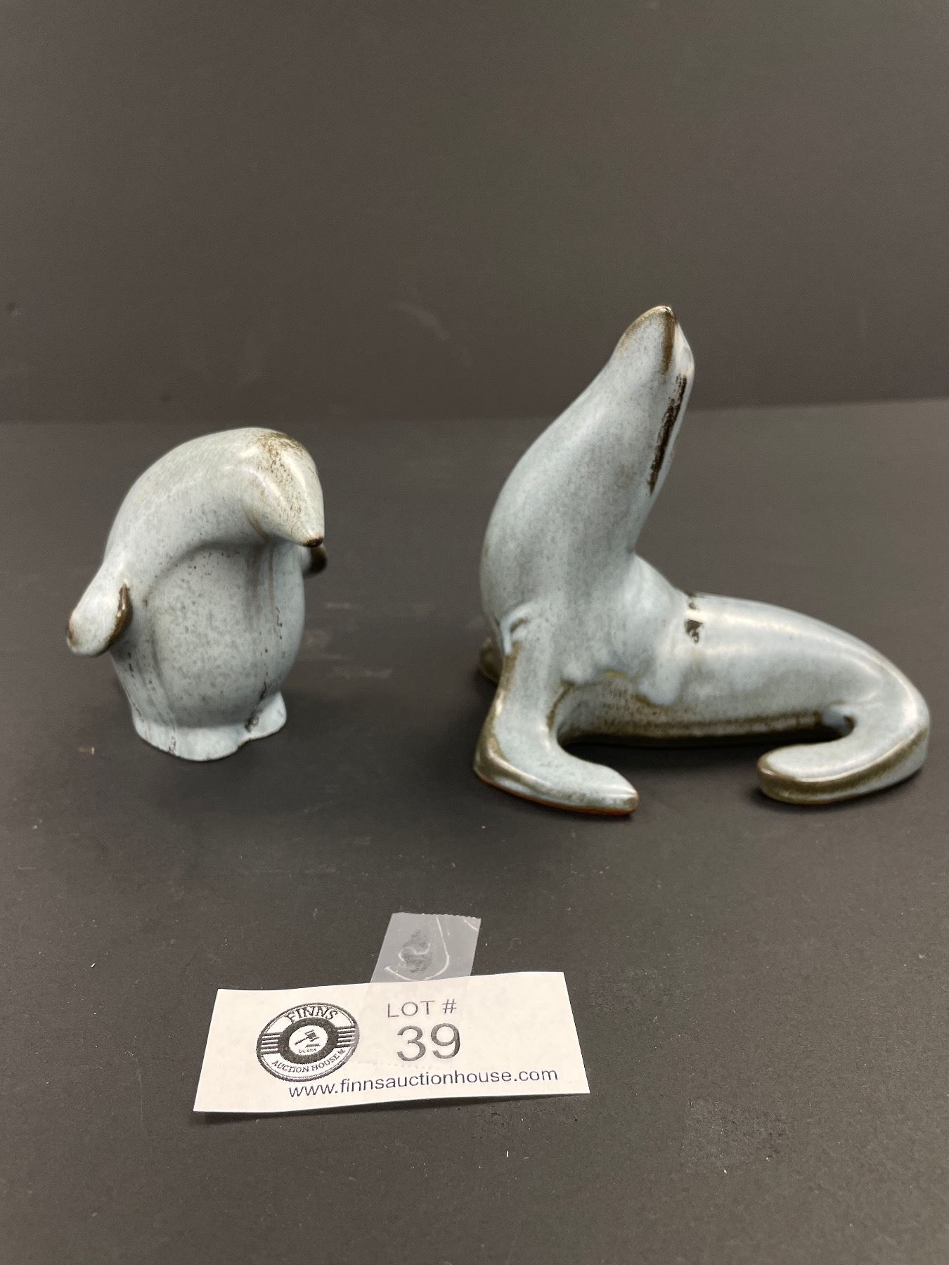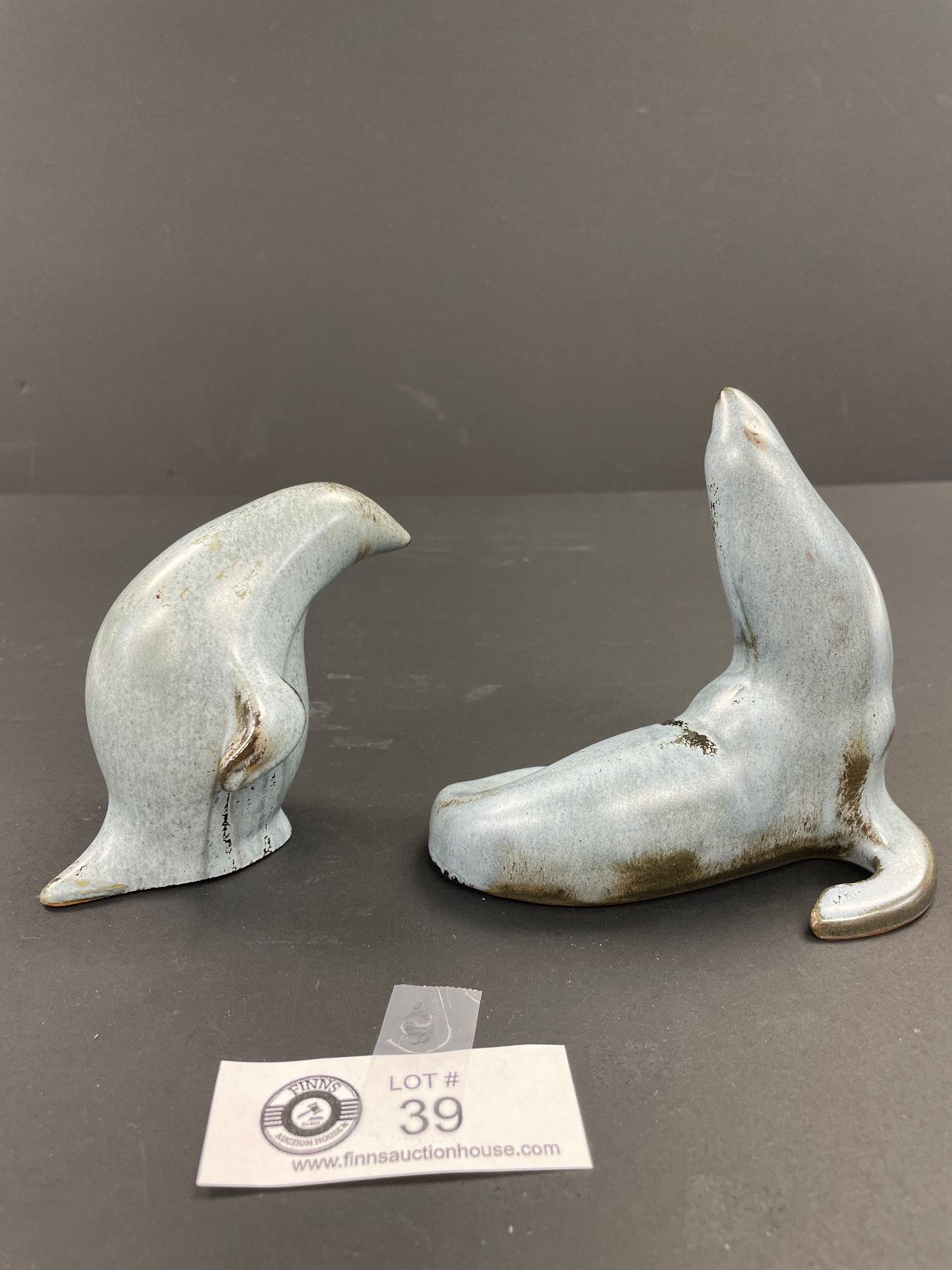 Blue Mountain Pottery Ceramic Seal and Penguin Unusual Pale Blue Glaze Rare Color