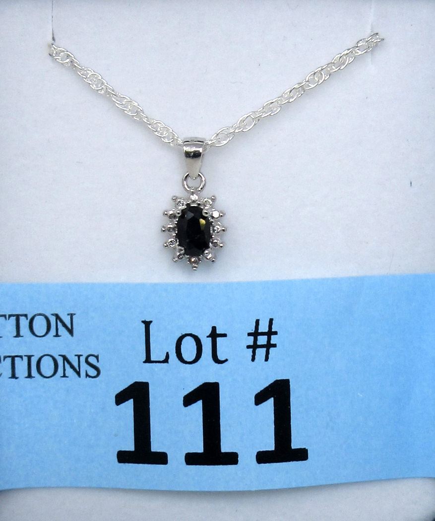 Blue Sapphire & Diamond Sterling Silver Pendant