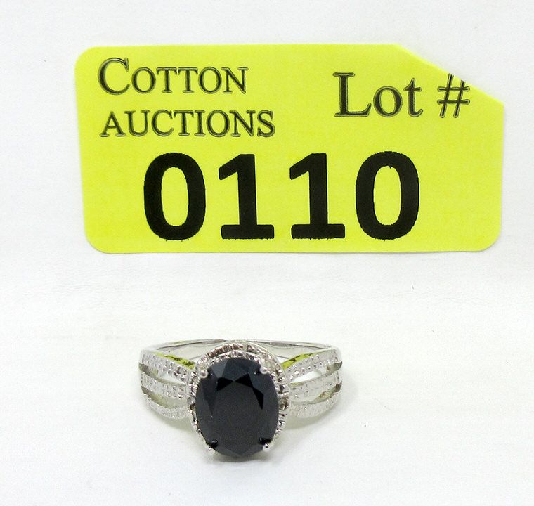 Large, 8 x 10 mm oval sapphire with 2 side diamonds. Retail value $340.