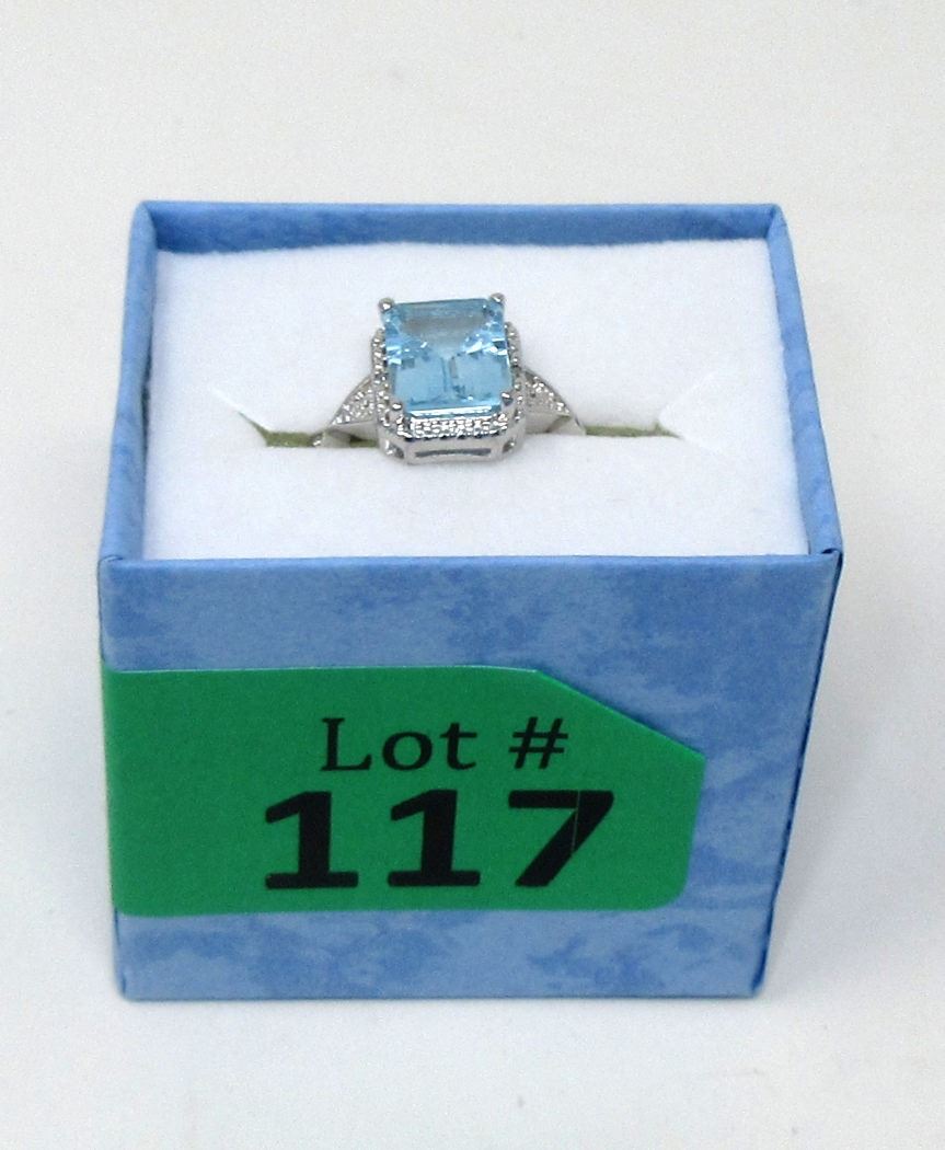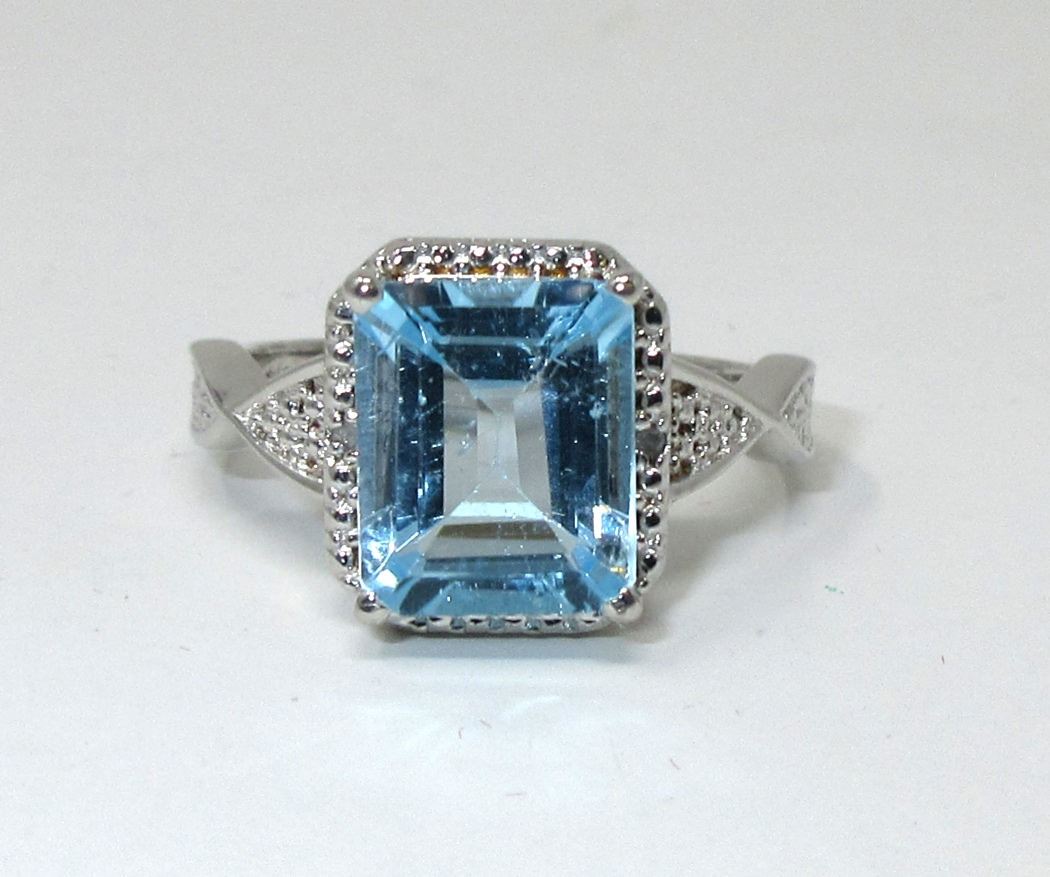 Emerald cut topaz & 2 diamonds. Retail value $350.