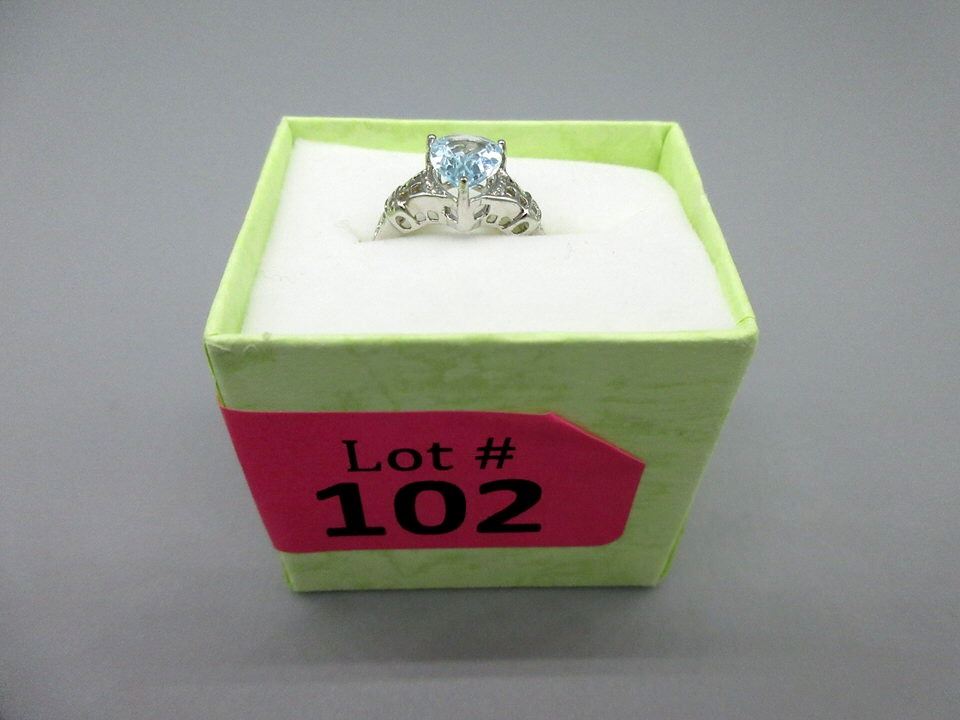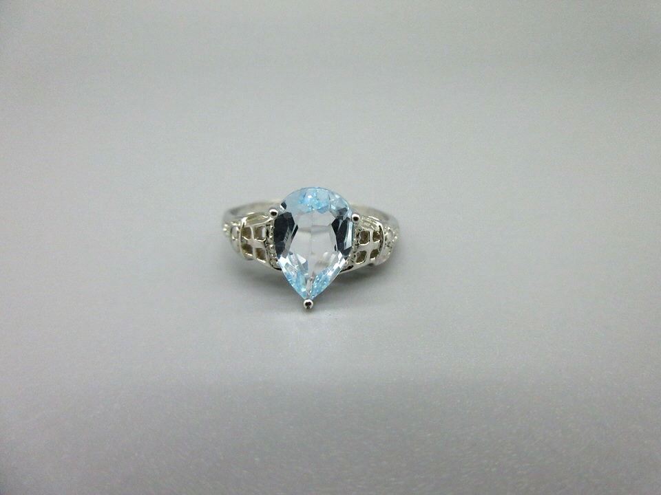 Sterling silver. 3.5 CT Pear cut topaz with 2 diamonds. Includes $400 certificate.