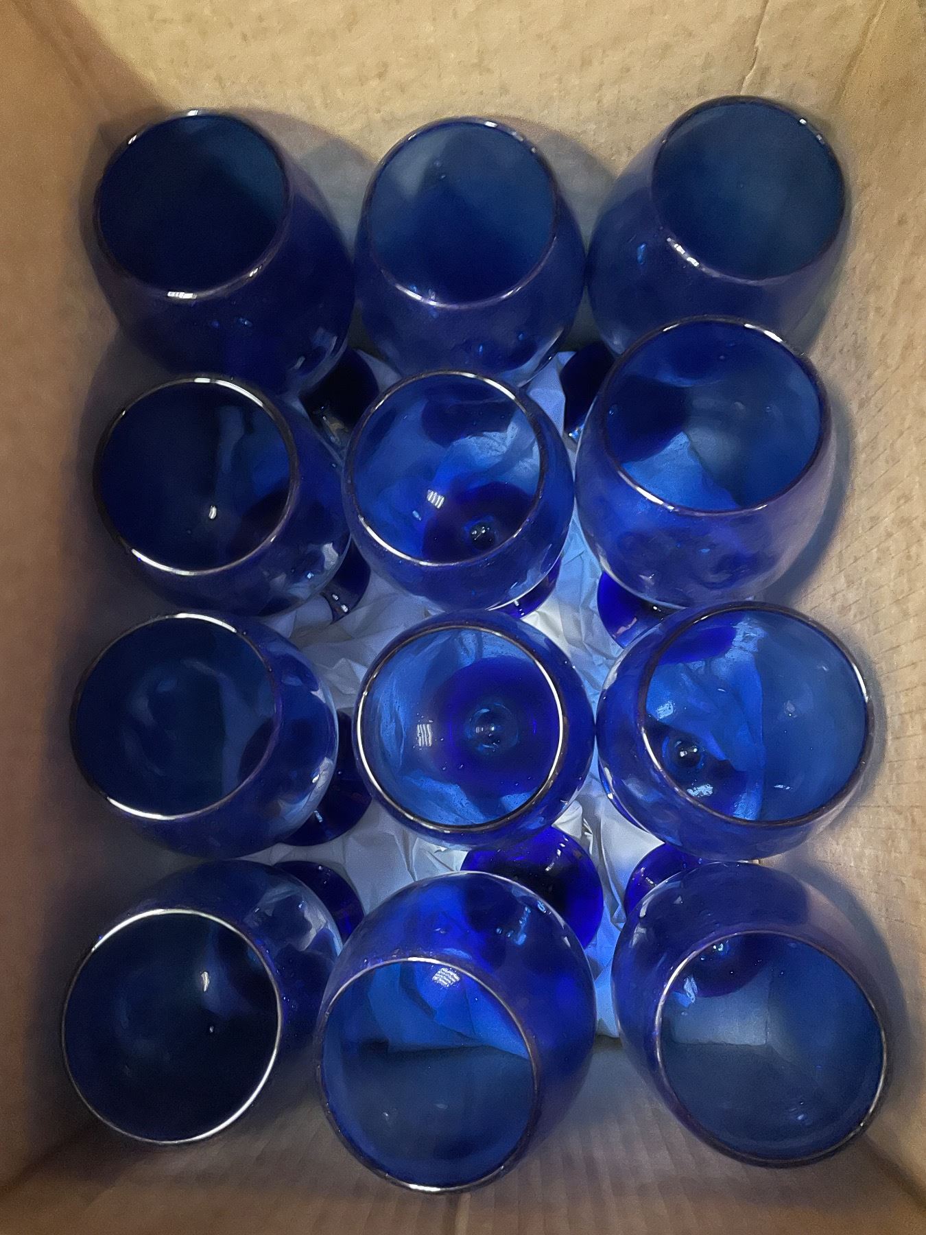 Blue glass wine glass set (x12)