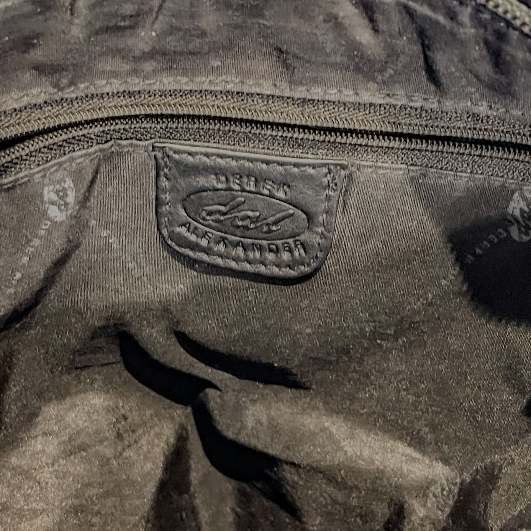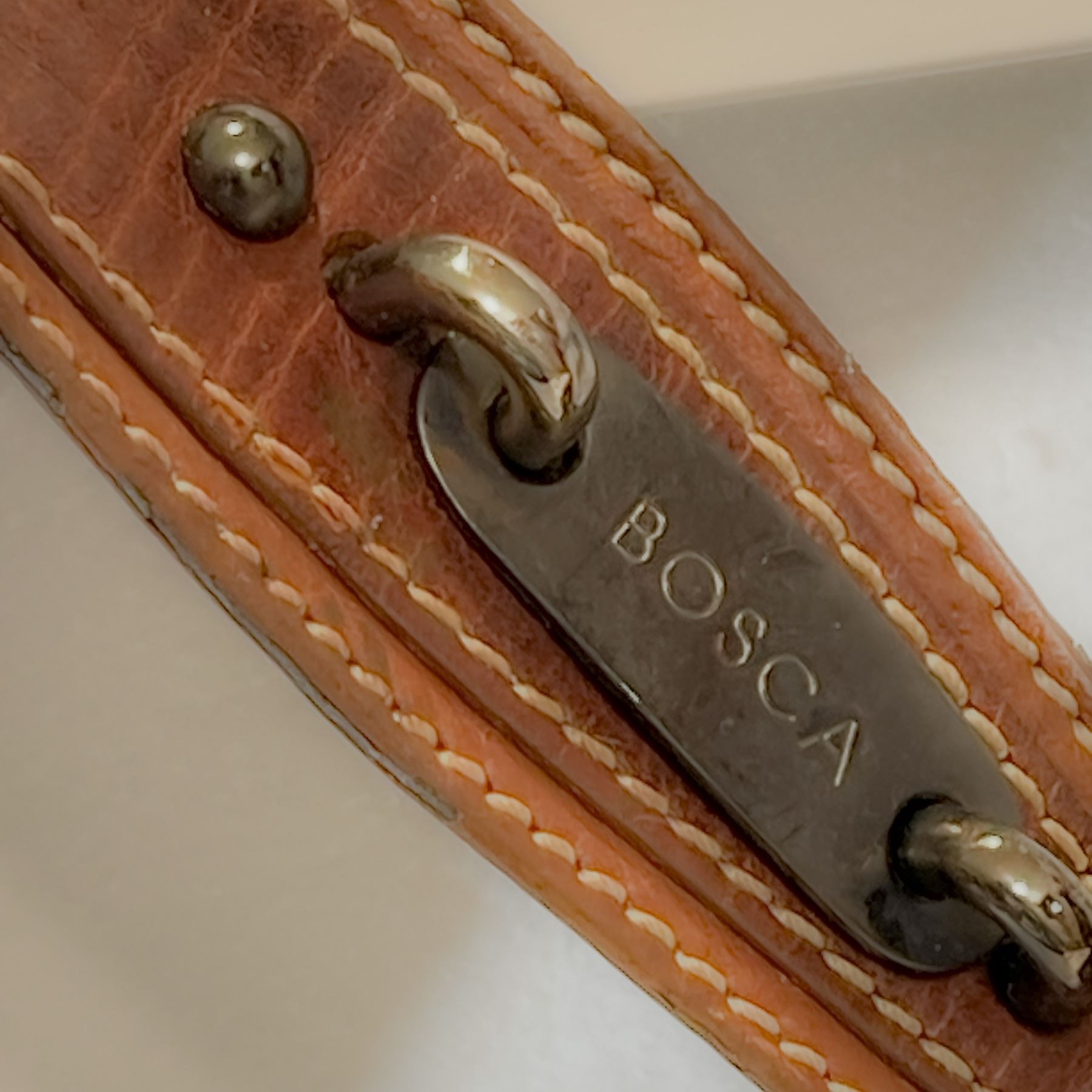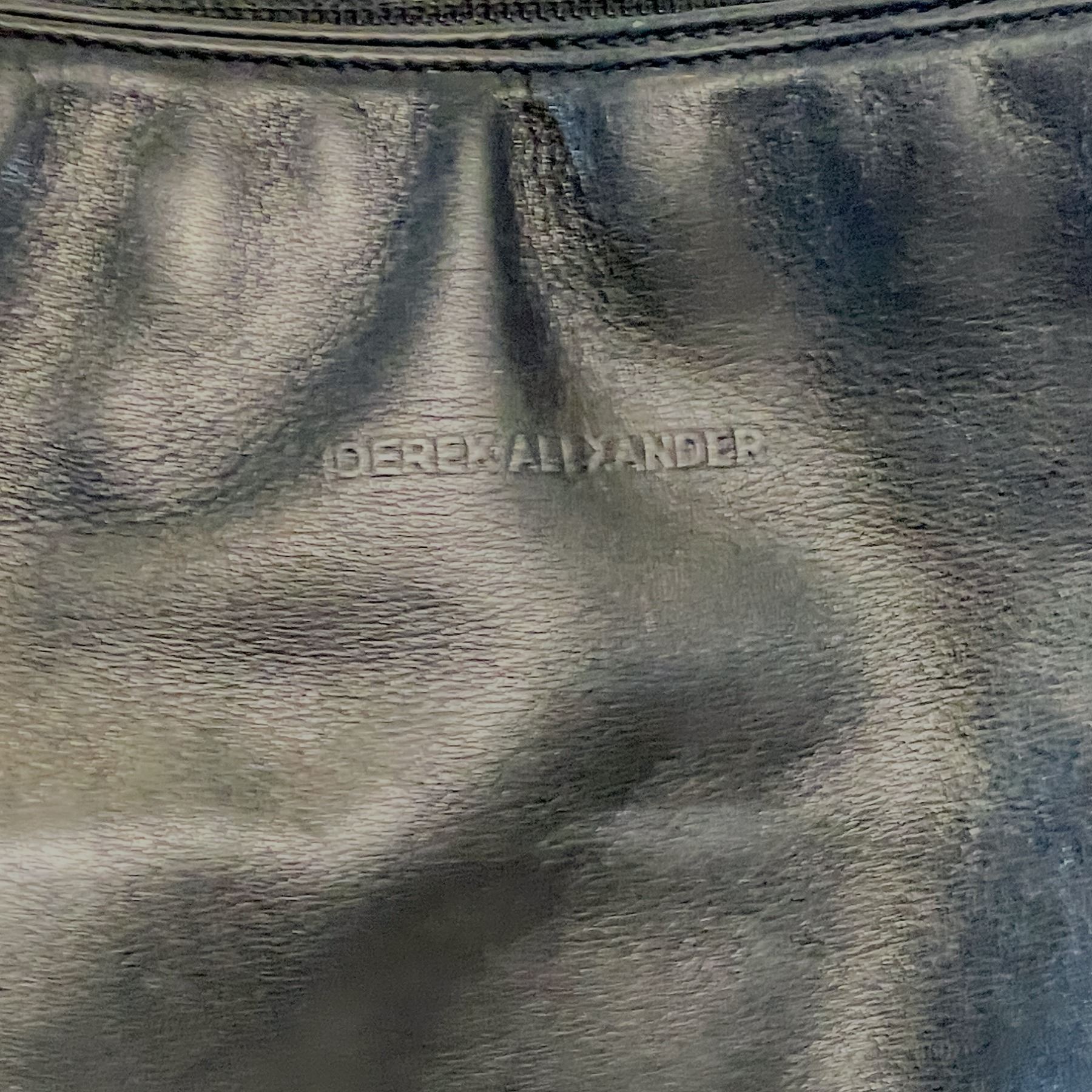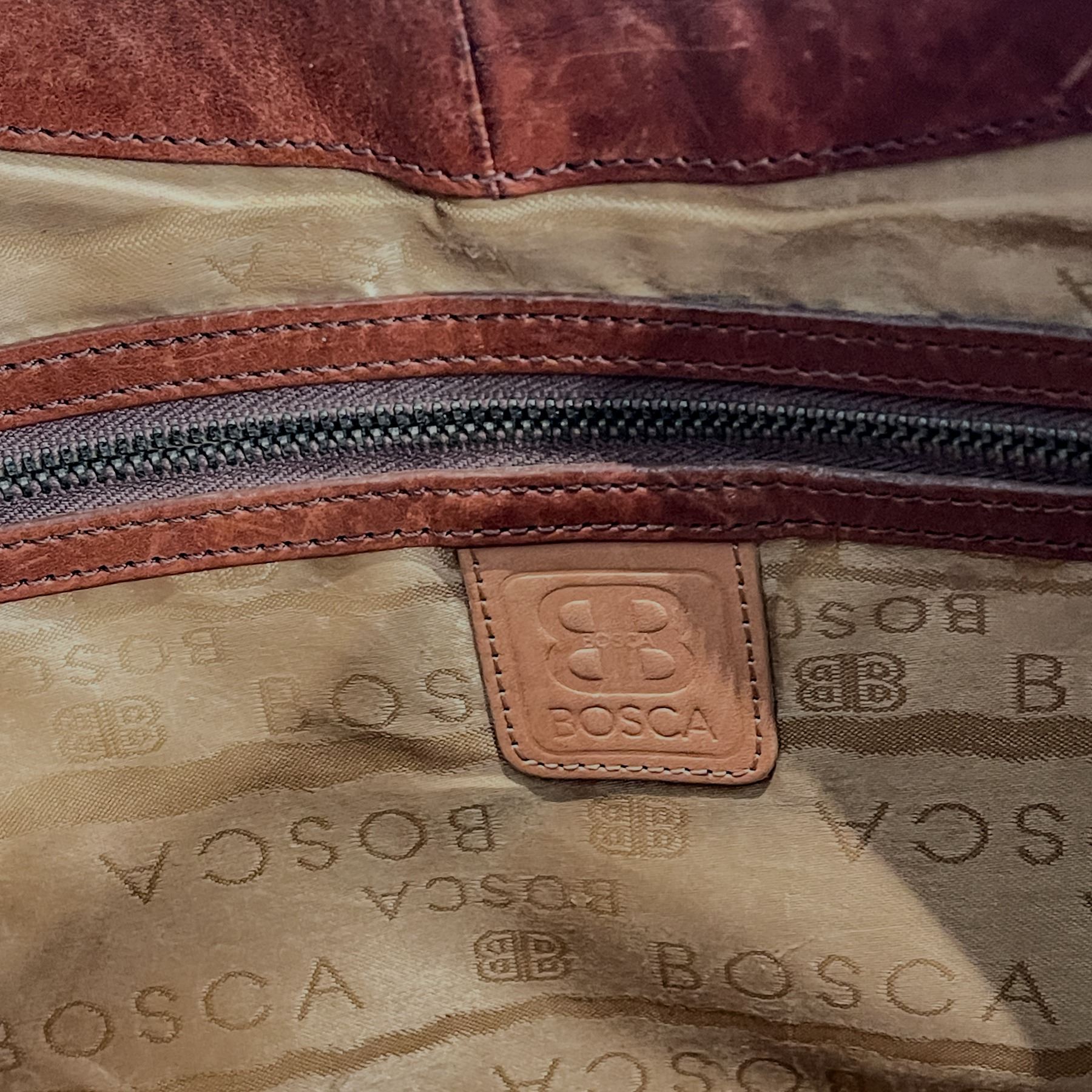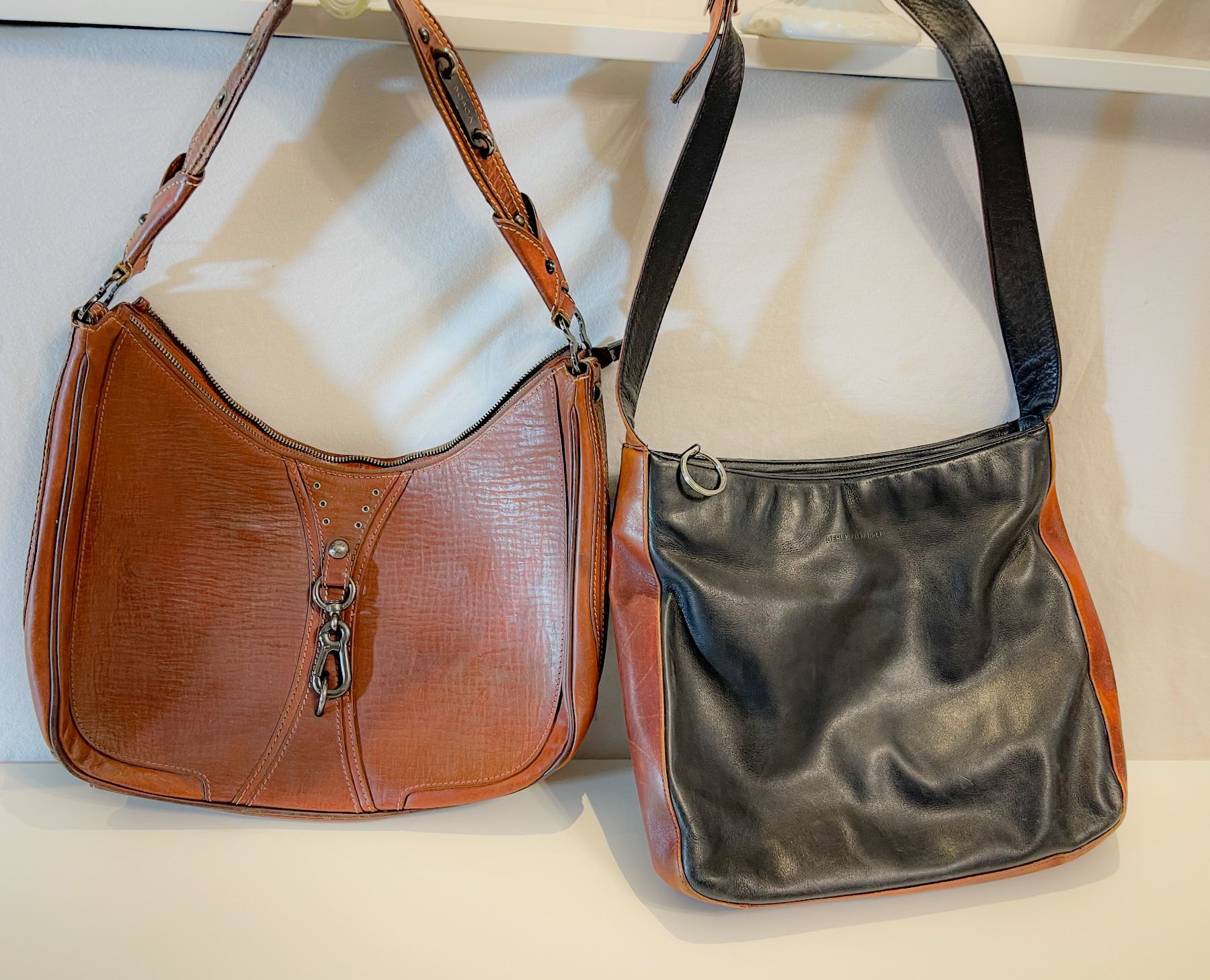 Pair of quality leather handbags including a rich brown Bosca Italian shoulder bag with clasp detail and a soft black-and-brown Derek Alexander crossbody. Both are genuine leather and in good vintage condition.