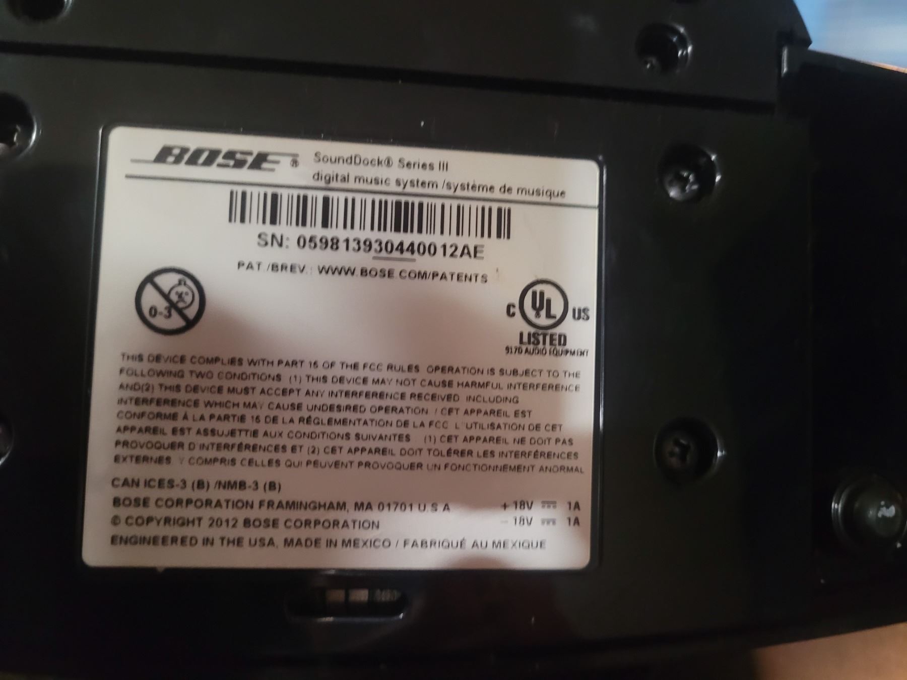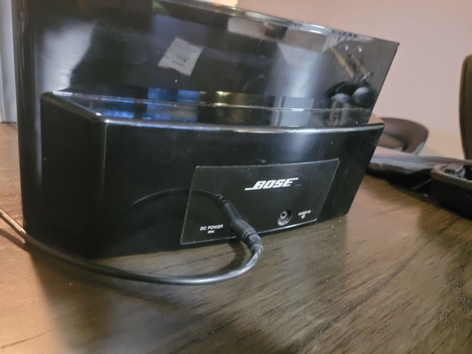 Bose headphones with cable, Bose speaker with docking station. Pick up 9-10.