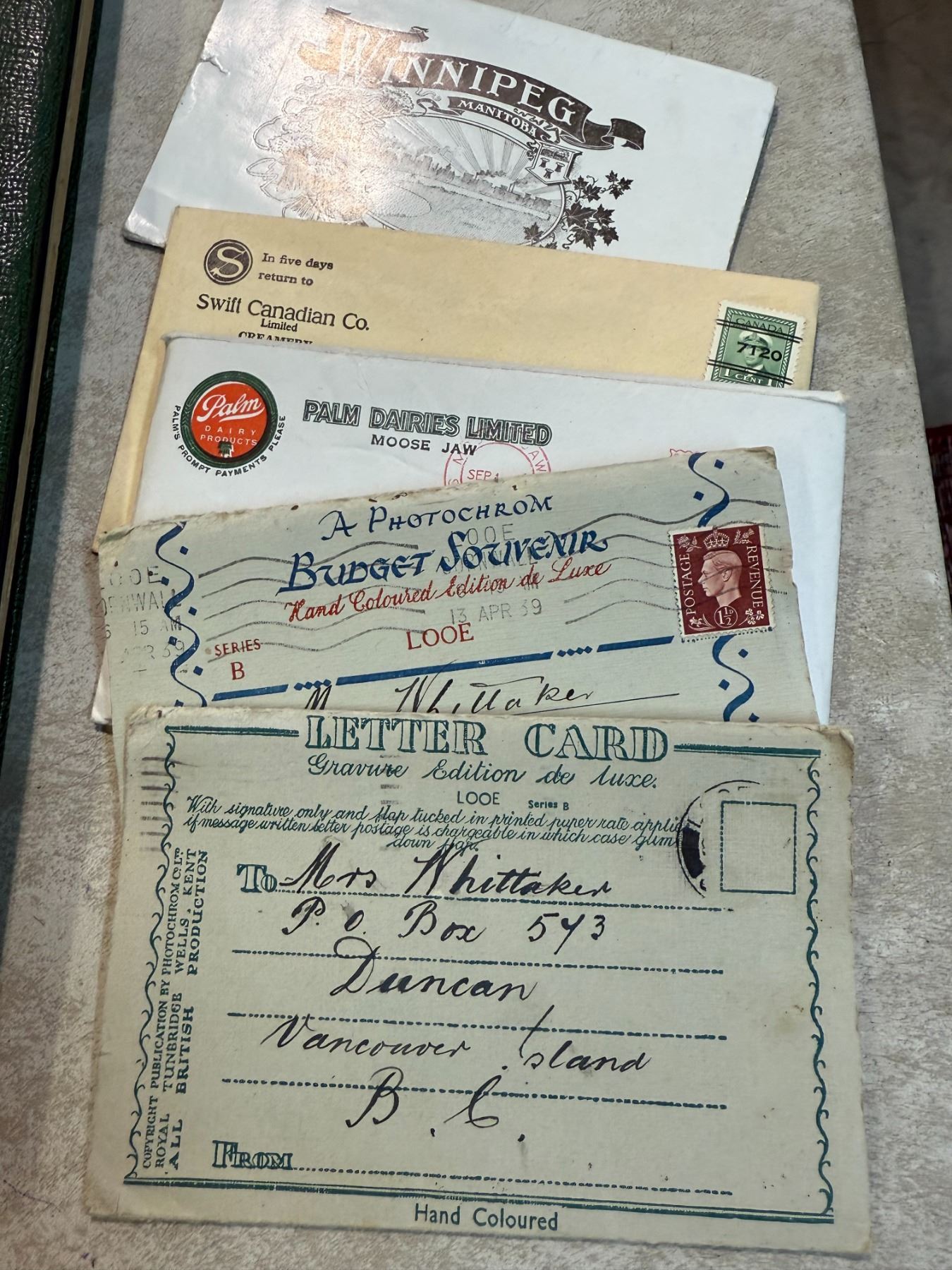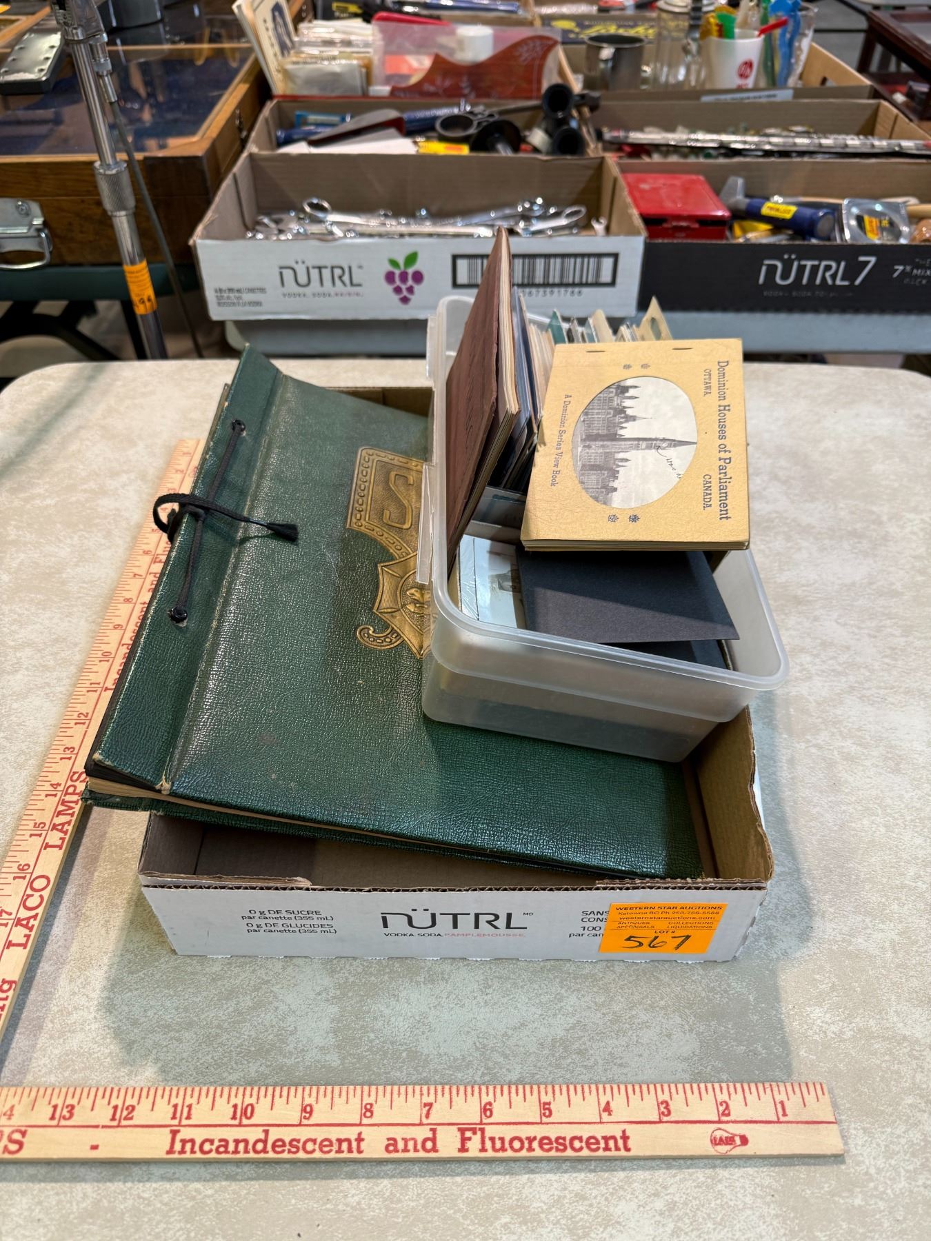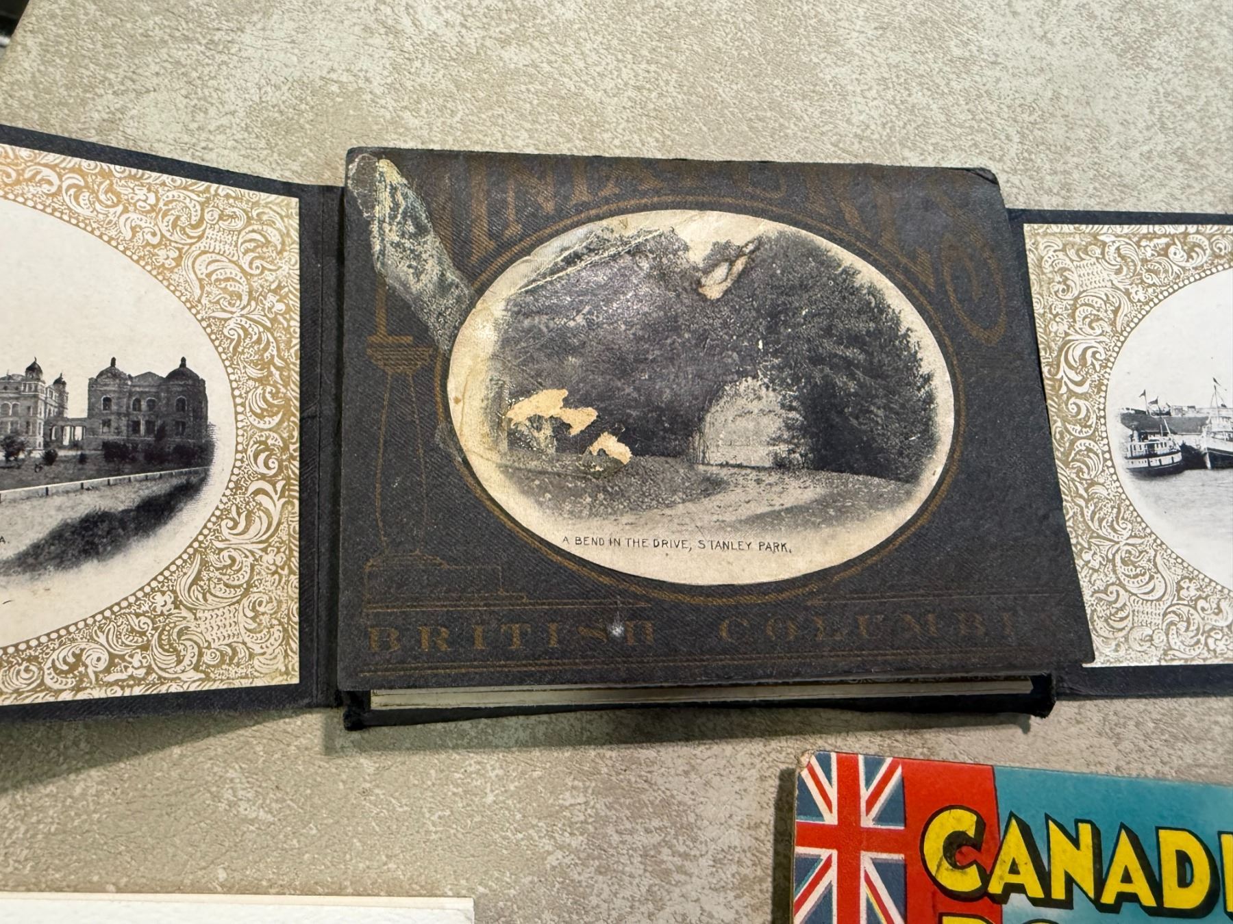 Box: Assorted Canadiana Postcards, Postcard Album, and Ephemera