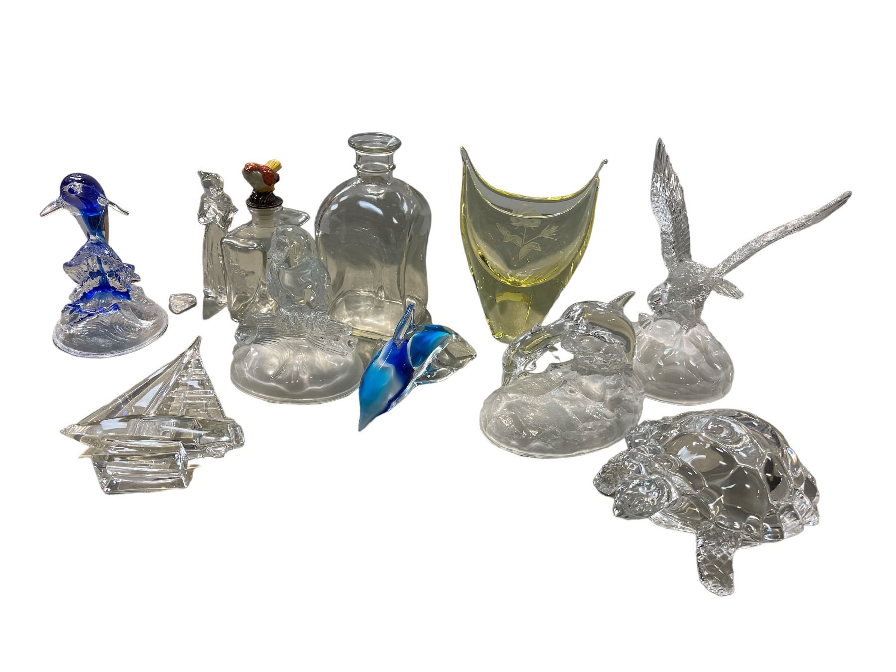 Box Full Of Collectible Glassware, Turtle, Ship, Dolphin, Etc..