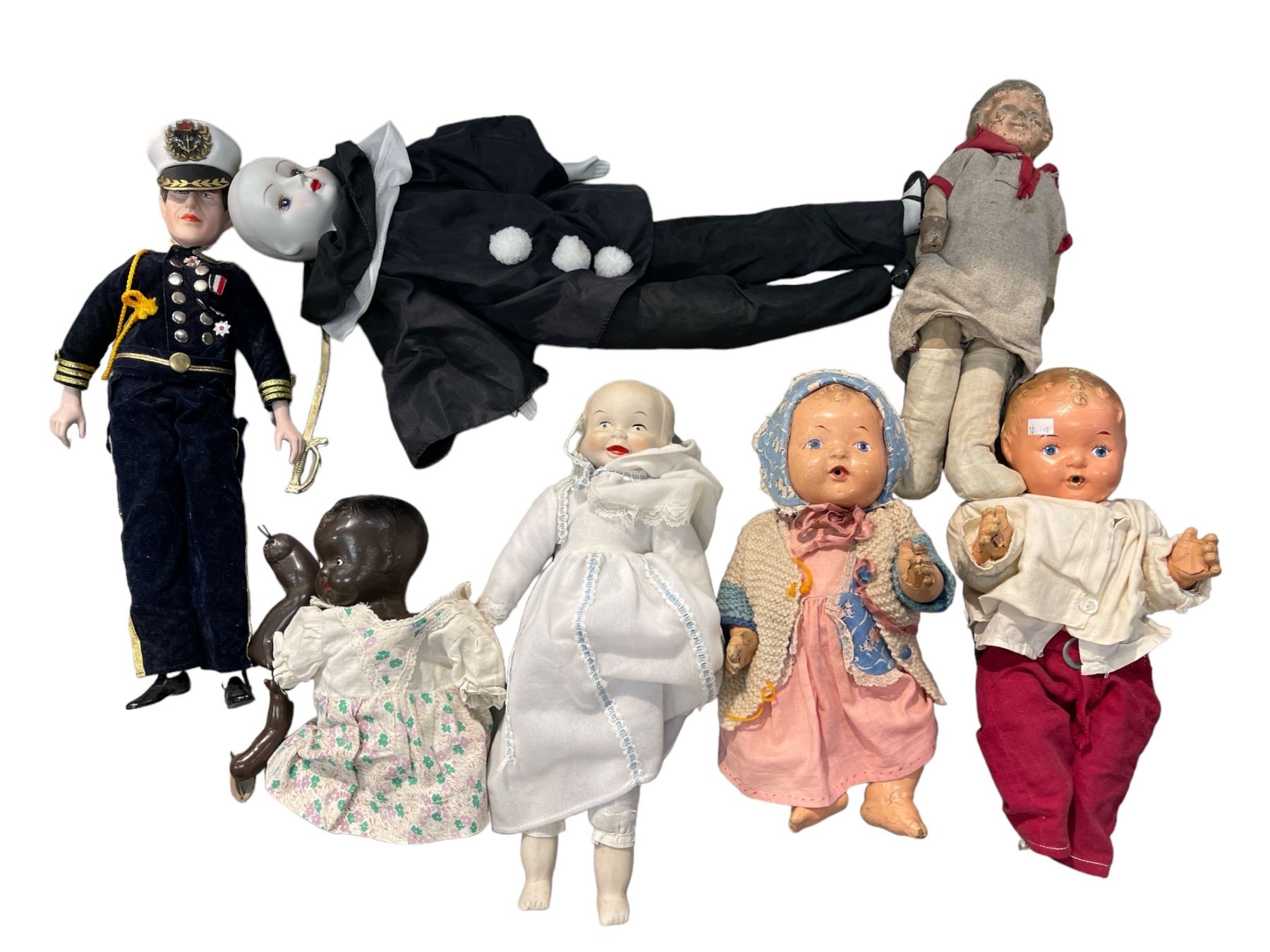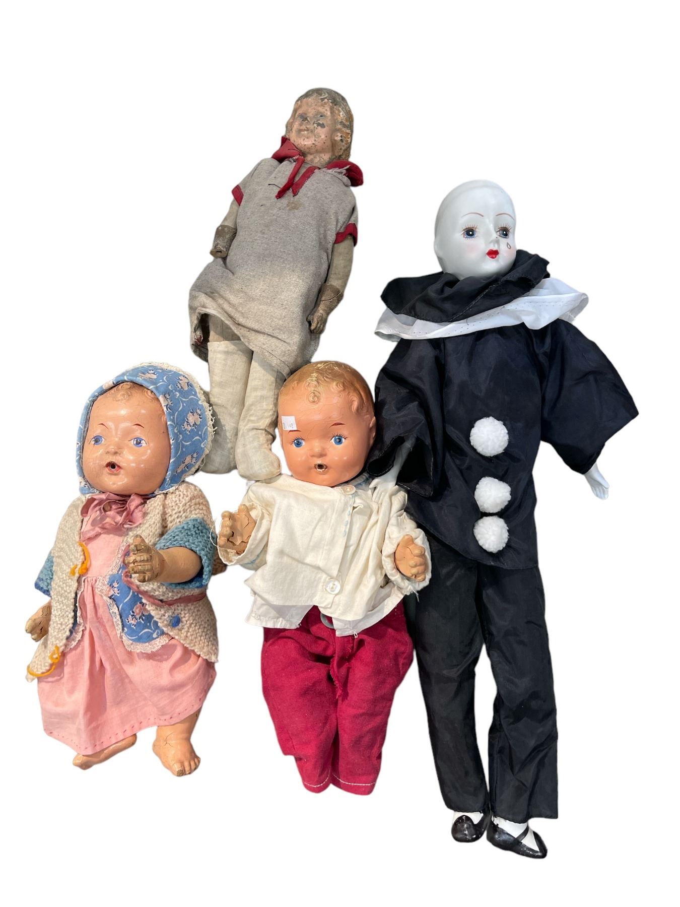Box Full Of Vintage Dolls, Including 3 Faced Porcelain Doll