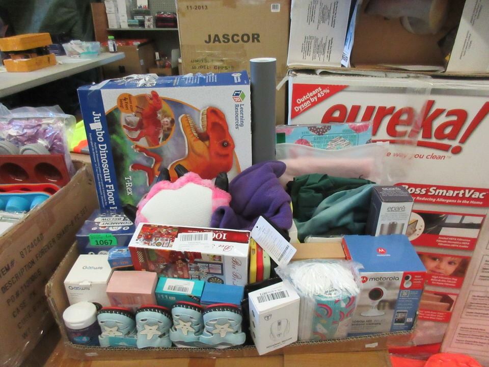 Dinosaur model, toddler shoes, jig saw puzzle, indoor WiFi camera, and more.