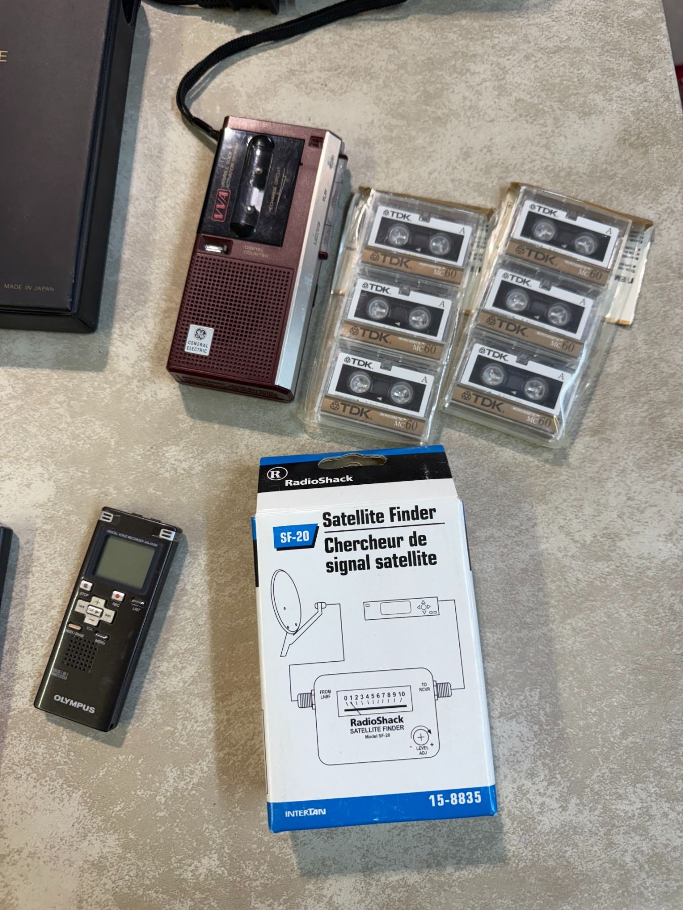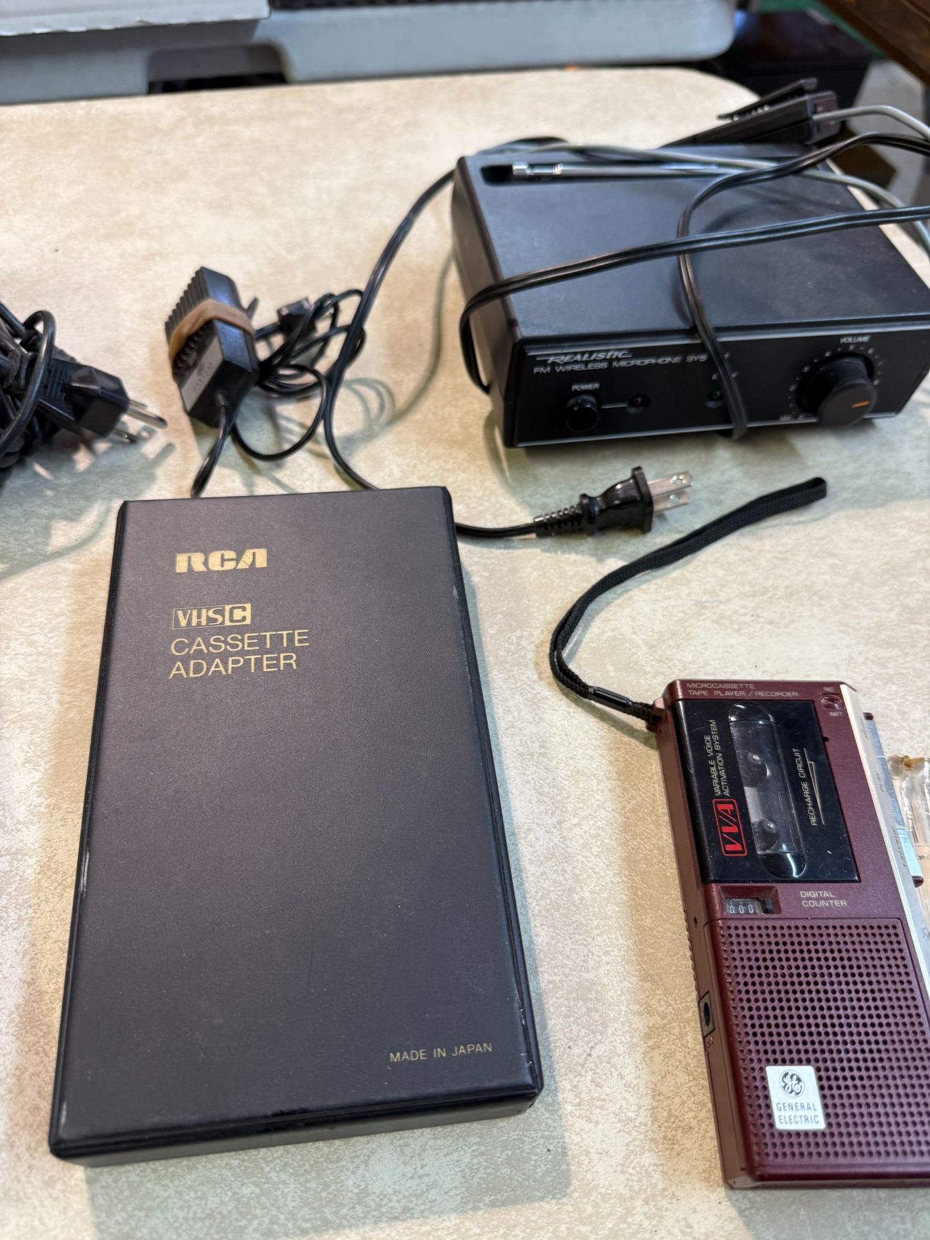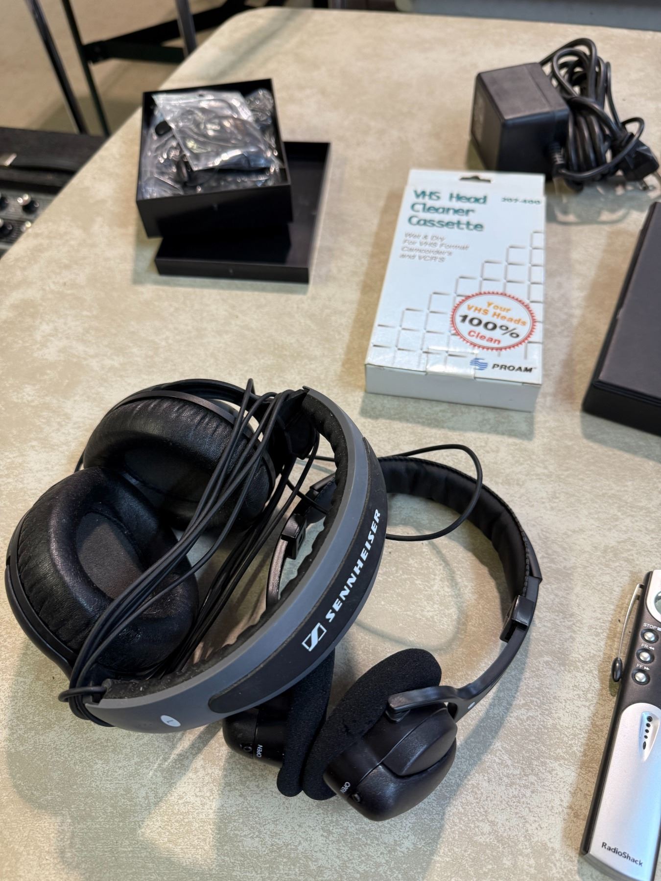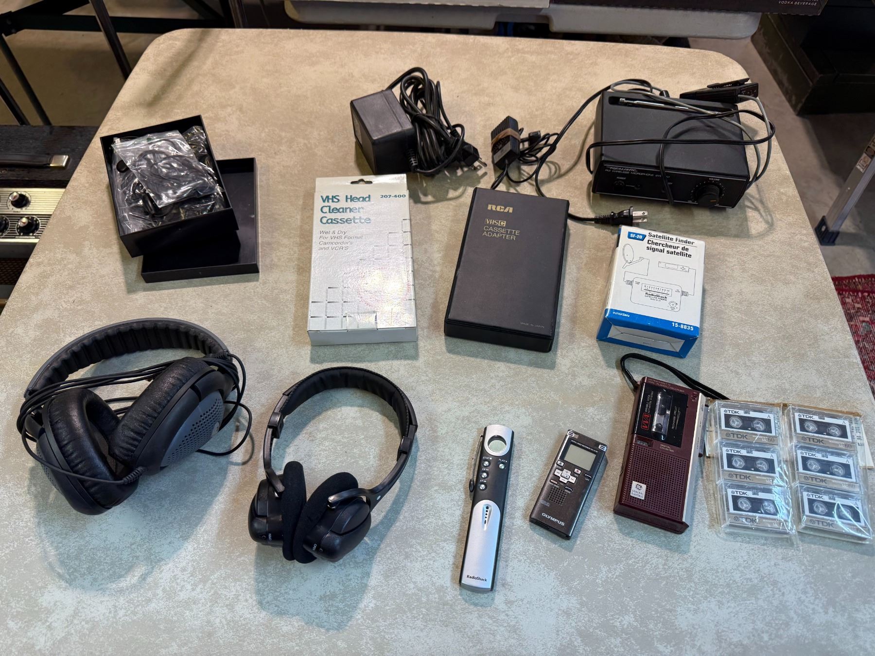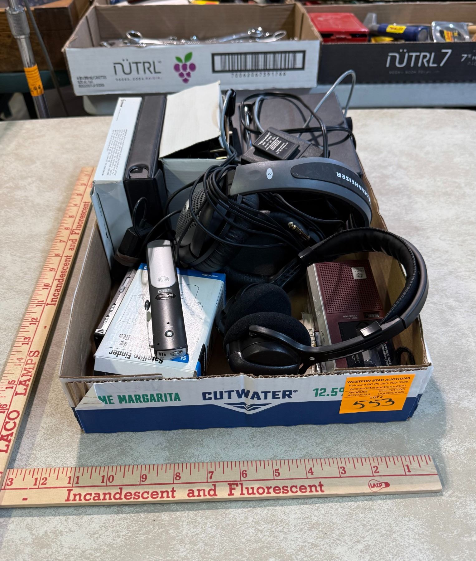 Box: Misc. Electronic Items - Sennheiser Headphones, Micro Cassette Recorders, Cassette Adapter, etc.