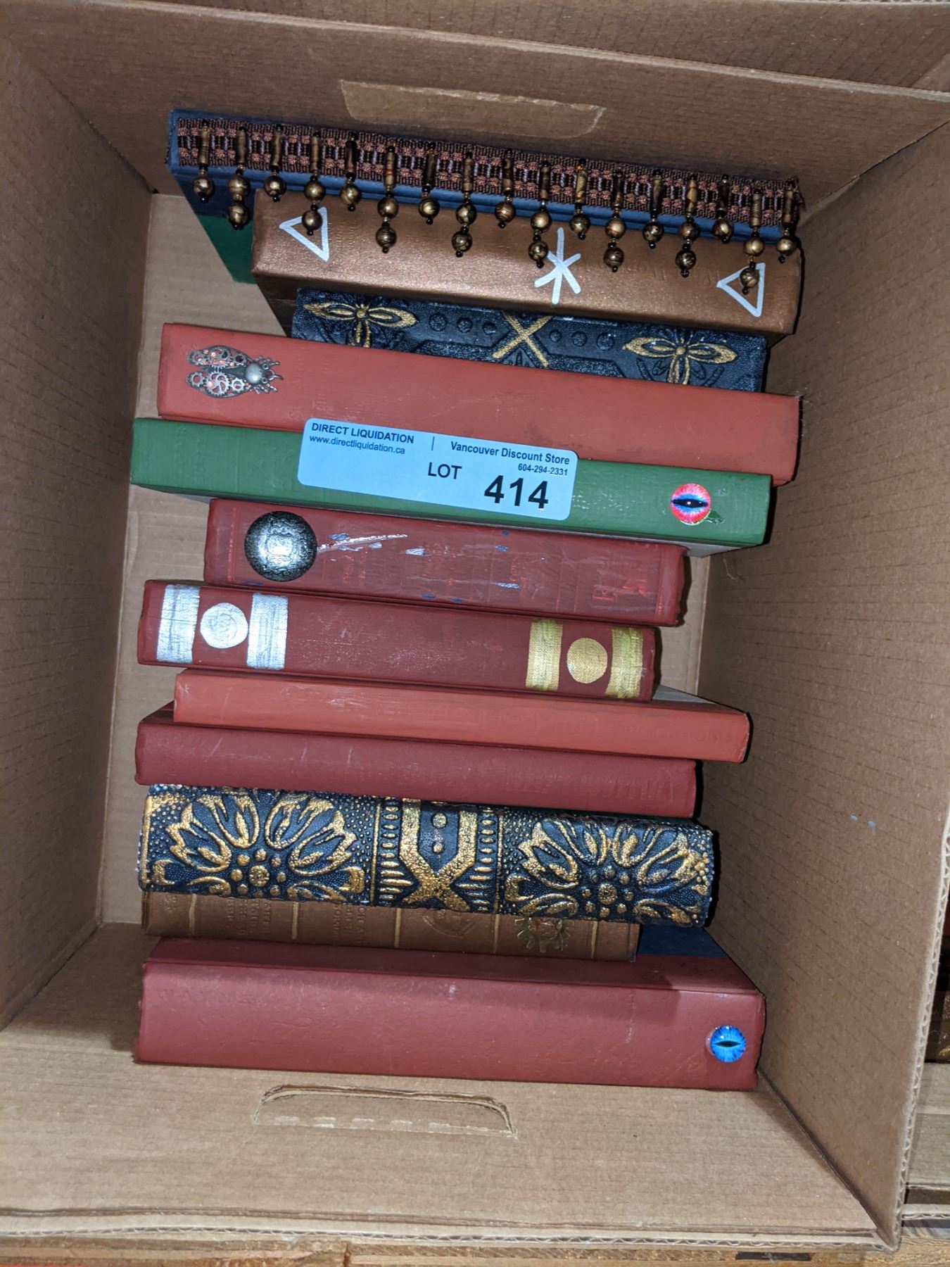 Box of prop books from chilling adventures. What is significant about this lot, and all the Occult books is we randomly grabbed 3 books from our huge collection of prop Occult books. One turned out to be an early edition of History of American Costumes around 1950'and the other one was Channings Works approx 1890's and the last one was a random book. So what we are saying is when you are buying these books in larger quantities, you can expect to find a few treasures.