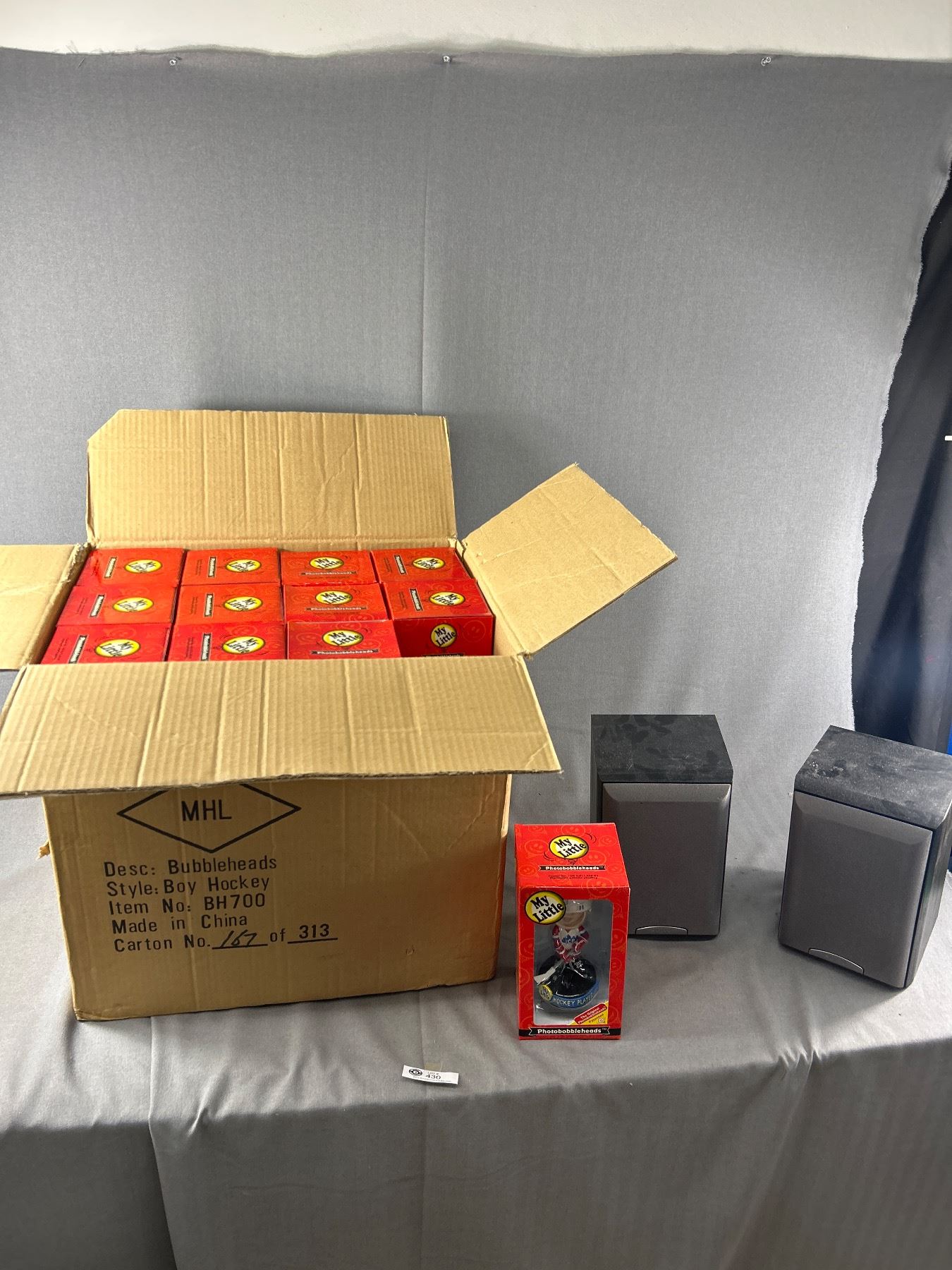 Box Of 24 My LittleFoto Bobble Heads & Pair Of Speakers