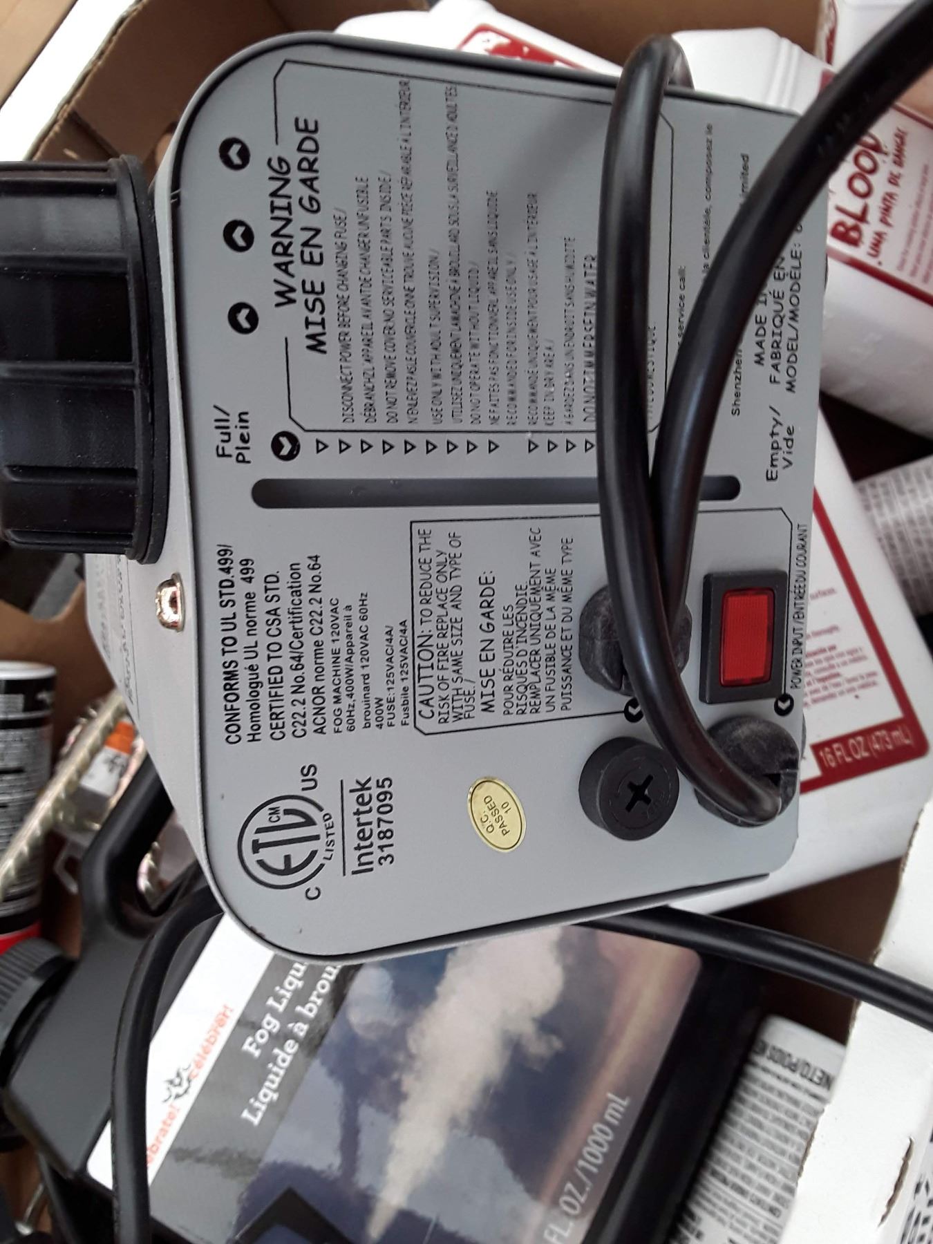 Box W/Fog Machine, Liquid Fog and Fake Blood -- 17% Buyer Fee. Payment Processed through Live Auction World Saturday @ 11:15 ( Visa or Master Card ) pick up Saturday Before 3:00, or Tuesday 9:30 till 5:20