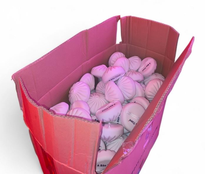 Box full of A Bao Time coin pouches with reuseable bags - approx. 50-100pcs