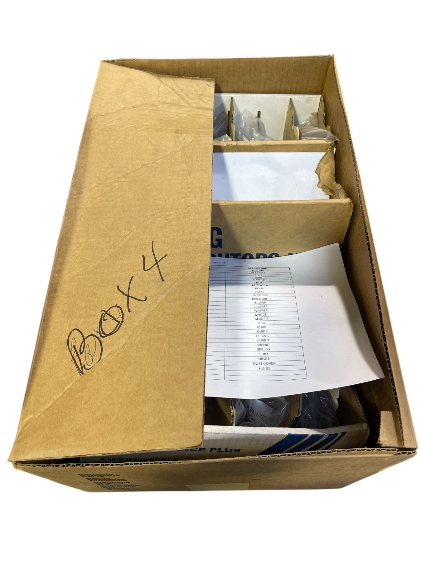 Box full of Forklift Parts - includes Seal Kit 300957/misc. Springs/Dust Cover 32398/Hinges etc.