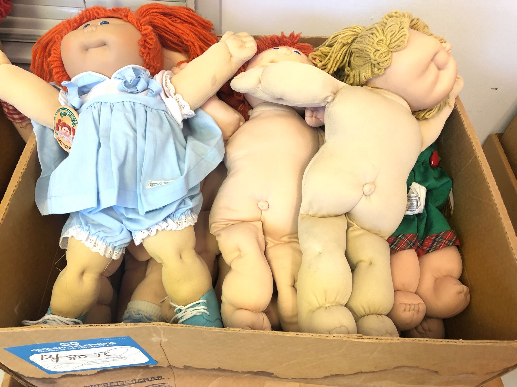 Box full of vintage estate cabbage patch kids dolls - approx 11 dolls