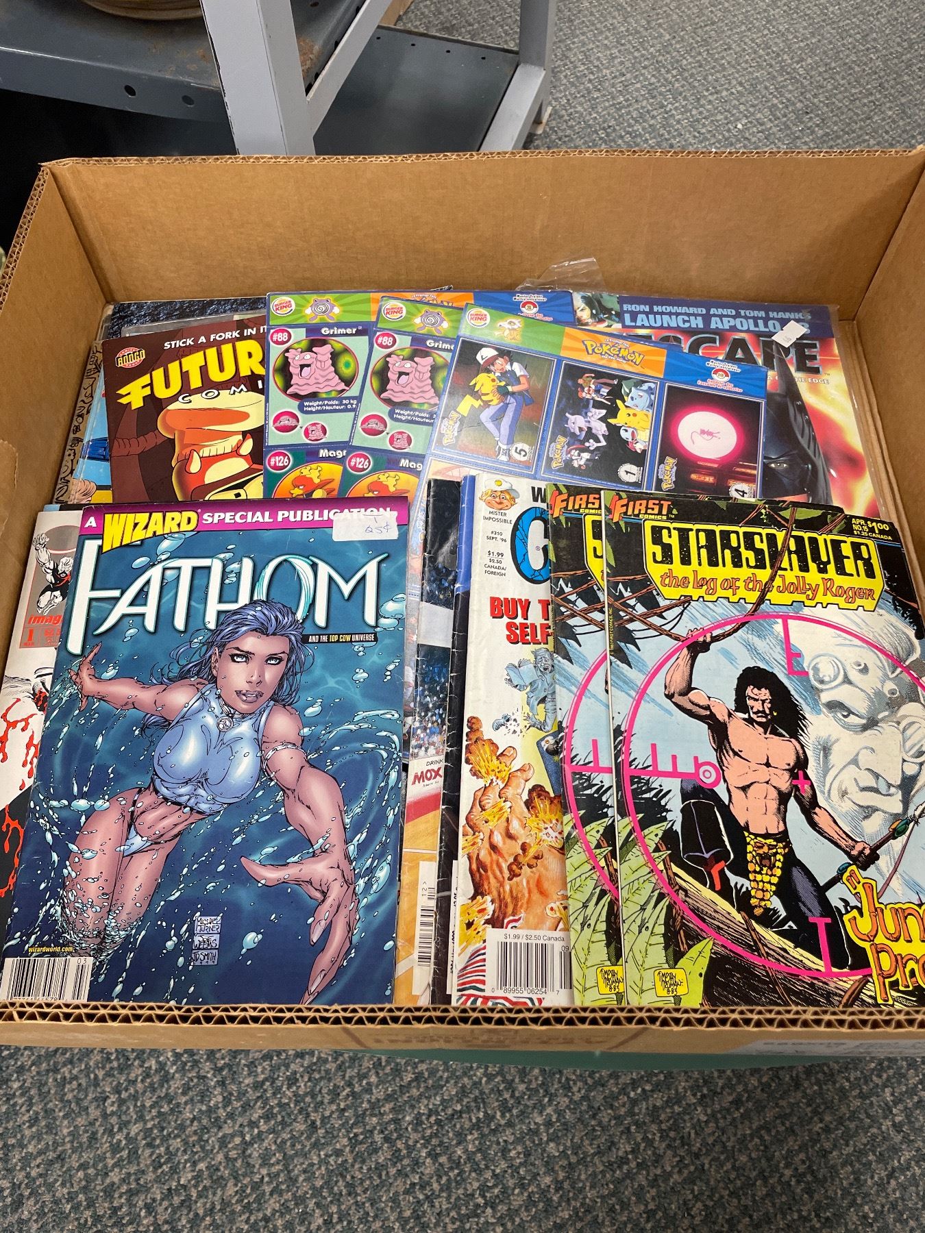 Box lot of Old Comics, Pokeman Cards etc