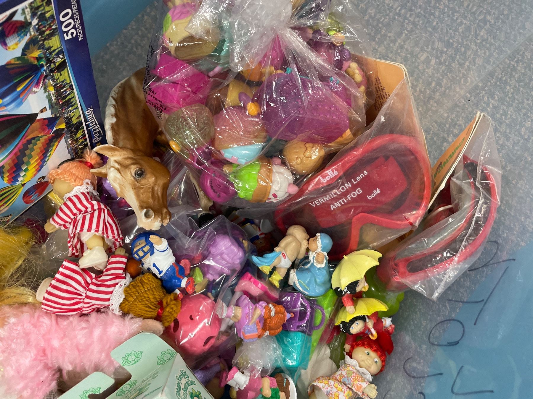 Box lot of Vintage Children's Toys. Cabbage Patch Kids, Barbie, Ty Etc