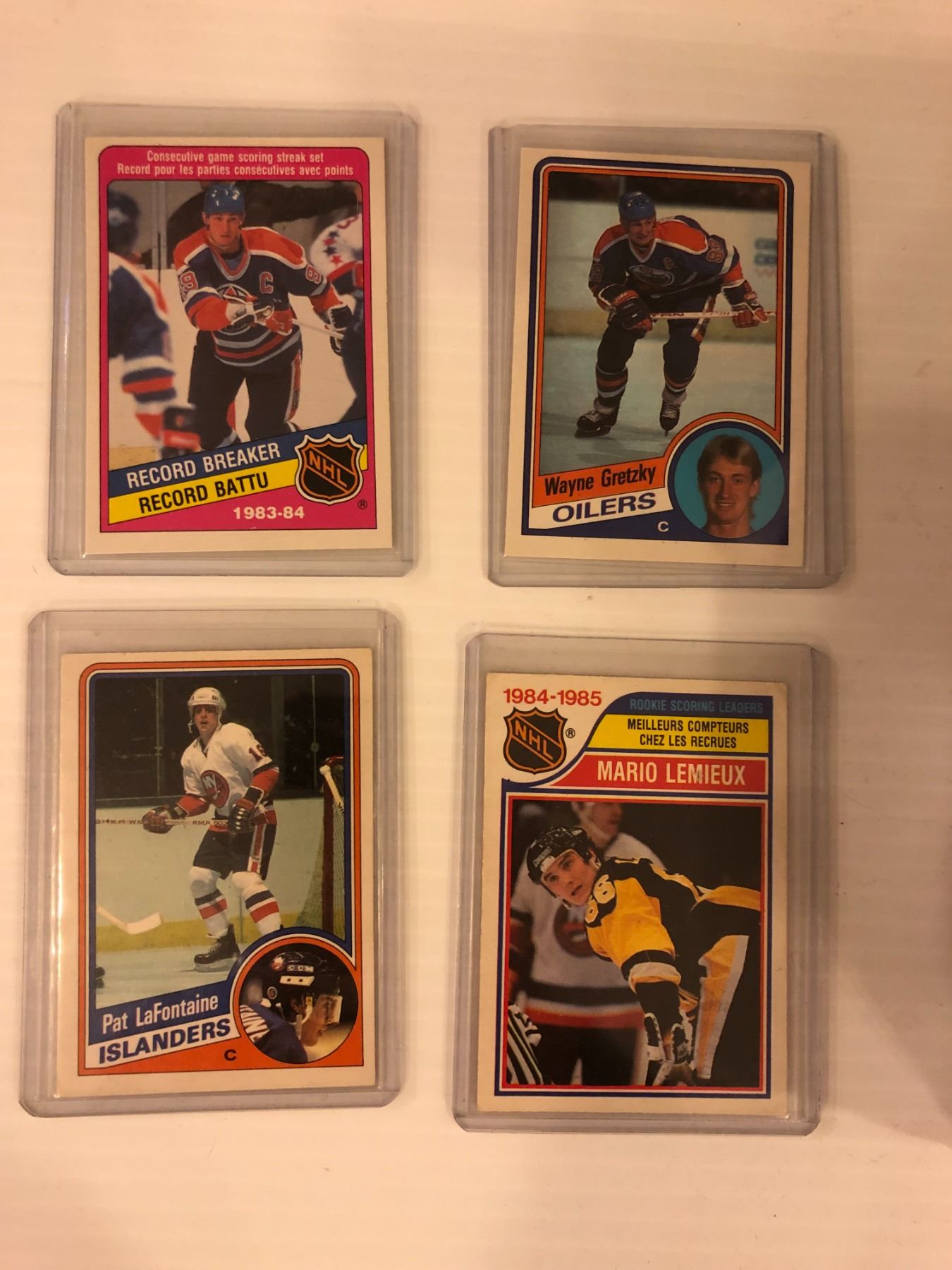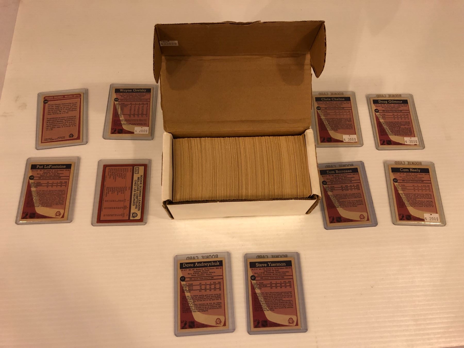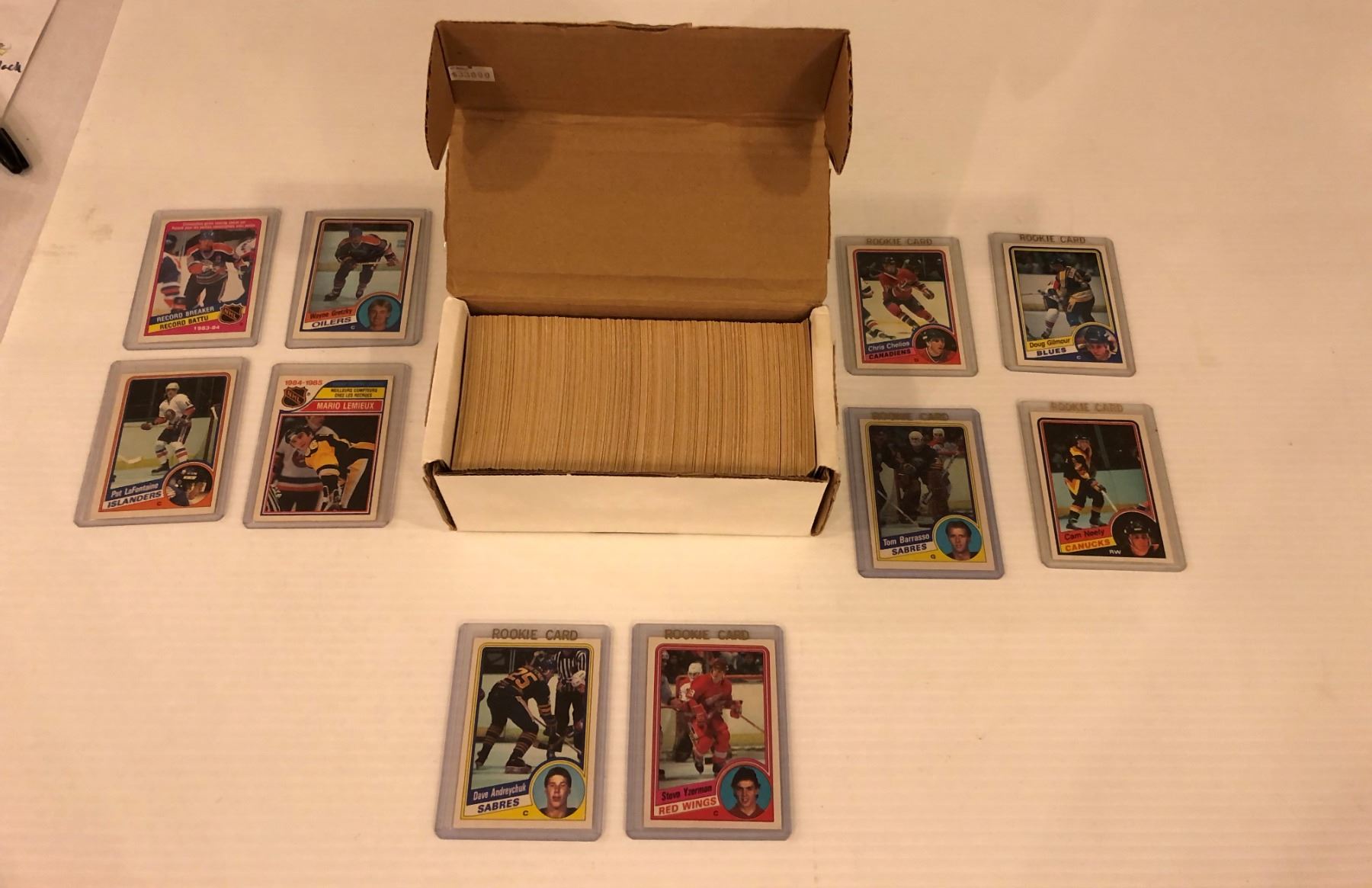 Box of 1984 - 1985 NHL collector's O Pee Chee cards complete set - approx. 200 cards (10 cards in protective cases)
