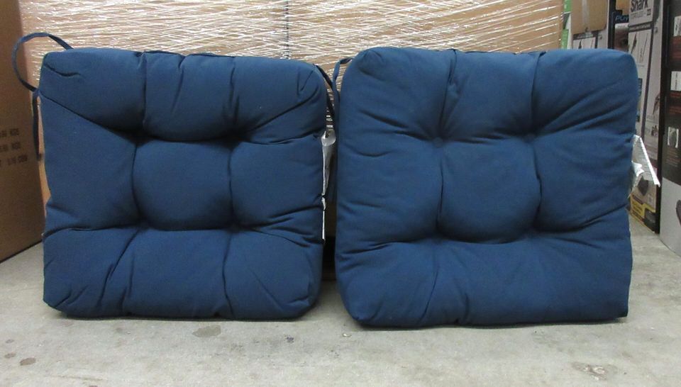 Box of 2 New Tufted Patio Seat Cushions - Blue