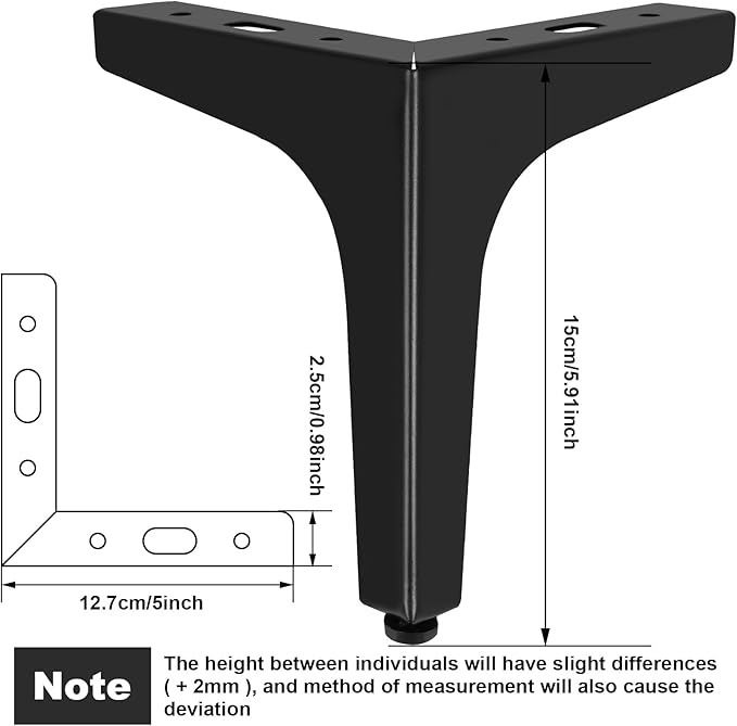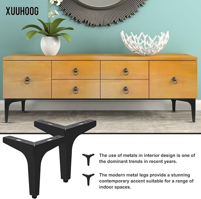 - xuuhoog 6 inch metal furniture legs - set of 4 modern iron diamond triangle feet, black, for sofa, cabinet, chair, bed, and more