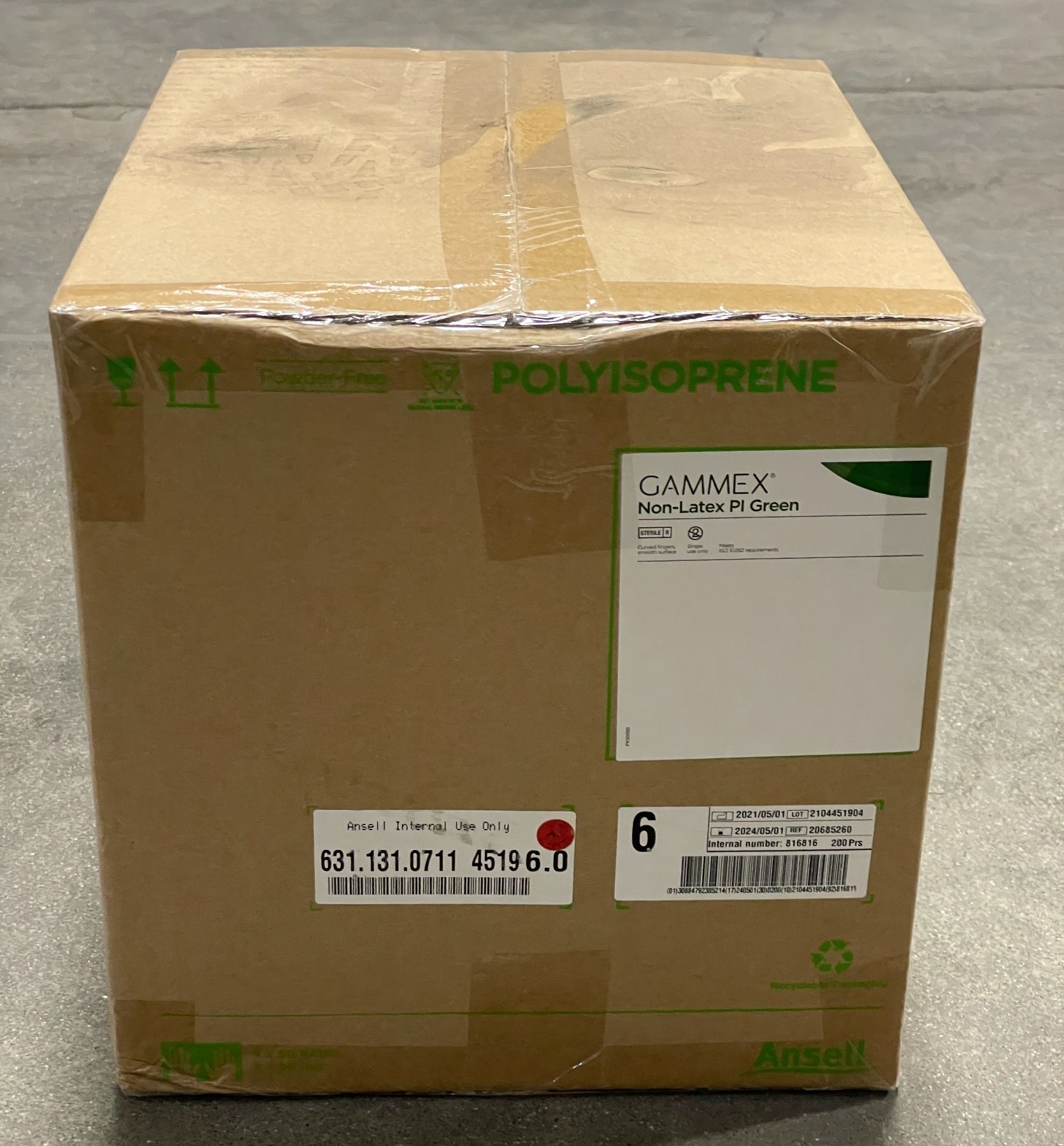 Box of 6 GAMMEX Non Latex PI Surgical Gloves – Green, 50 Pairs/Box - Expiry dates may differ across